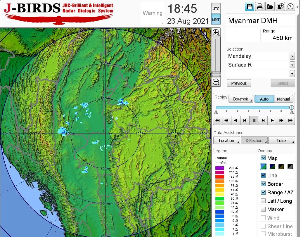ဘင်္ဂလားပင်လယ်အော်အခြေအနေ။ ကပ္ပလီပင်လယ်ပြင်နှင့် ဘင်္ဂလားပင်လယ်အော်တောင်ပိုင်းတို့တွင် မုတ်သုံလေ အားအနည်းငယ်မှ အားအသင့်အတင့် ရှိနေပြီး၊ ကျန်ဘင်္ဂလားပင်လယ်အော်တွင် မုတ်သုံလေ အားနည်းနေပါသည်။