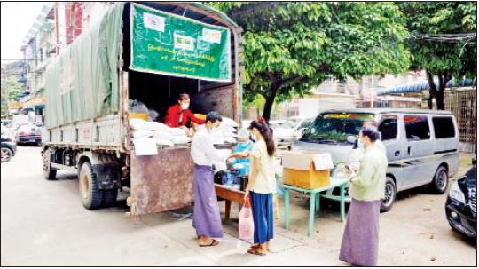 ကိုဗစ်-၁၉ရောဂါဖြစ်ပွားမှုအကျိုးဆက်များကြောင့်အခြေခံစားကုန်နှင့် အိမ်သုံးဆေးဝါးများ ဝယ်ယူရရှိမှု အခက်အခဲမရှိစေရန်အတွက် ရွေ့လျားဈေးကား Mobile Market စနစ်ဖြင့် ဈေးနှုန်းသက်သာစွာဖြင့် လှည့်လည် ရောင်းချပေးလျက်ရှိ