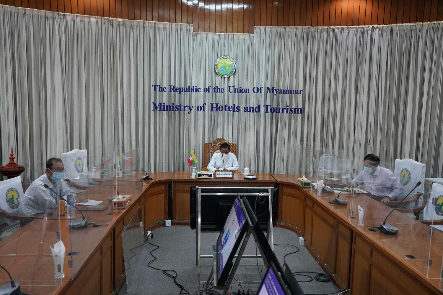 ကမ္ဘောဒီးယား၊ လာအို၊ မြန်မာ၊ ဗီယက်နမ်နှင့် ထိုင်းနိုင်ငံတို့ ပါဝင်သော ACCELERATING A RESILIENT RECOVERY CLMVT Plus Forum 2021 ကို ယနေ့နံနက် ၉ နာရီတွင် ဗီဒီယိုကွန်ဖရင့် စနစ်ဖြင့် ကျင်းပရာ ဟိုတယ်နှင့် ခရီးသွားလာရေးဝန်ကြီးဌာန၊ ပြည်ထောင်စုဝန်ကြီး ဒေါက်တာ ဌေးအောင်နှင့် တာဝန်ရှိသူများ၊ မြန်မာနိုင်ငံ ခရီးသွားလုပ်ငန်းအဖွဲ့ချုပ်ဥက္ကဋ္ဌနှင့် အသင်းများမှ ကိုယ်စားလှယ်များ တက်ရောက်ကြပြီး CLMVT အဖွဲ့ဝင်နိုင်ငံများမှ အဆင့်မြင့်ကိုယ်စားလှယ်များ၊ Trade Partner များနှင့် အခြားသော အာဆီယံအဖွဲ့ဝင်နိုင်ငံများမှ ကိုယ်စားလှယ်များ ပါဝင် တက်ရောက်ကြသည်။