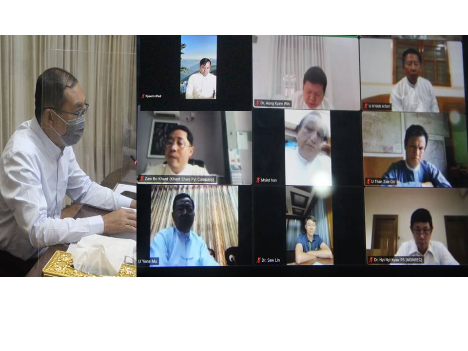 ဆက်လက်၍ ပြည်ထောင်စုဝန်ကြီးက ကျောက်စိမ်းများကို အရိုင်းအတိုင်း ပြည်ပသို့ တင်ပို့ခဲ့သည်မှာ နှစ်များစွာကြာမြင့်ခဲ့ပြီဖြစ်ကြောင်း၊ ရန်ကုန်မြို့တွင် ပင်လုံရတနာဈေး တည်ဆောက်ခဲ့သော်လည်း လုပ်ငန်းဆောင်ရွက်နိုင်ခဲ့ခြင်း မရှိခဲ့ကြောင်း၊ နေပြည်တော်တွင် ရွှေကြာပင်ကျောက်မျက် ရတနာဈေးကို ၂၀၁၂ ခုနှစ်ကပင် မြေဧရိယာ ၂၂၅ ဧက၊ အကွက်ပေါင်း ၁၂၂ ကွက်တွင် အချောထည်များ ထုတ်လုပ်ရောင်းချနိုင်မည့် အဆောက်အဦများနှင့် စက်ရုံအလုပ်ရုံများကို ဆောက်လုပ် ဆောင်ရွက်စေခဲ့ကြောင်း၊ အဆောက်အဦအများစုမှာ ပြီးစီးခဲ့ပြီး ယခုအခါ လက်တွေ့ အချောထည် လုပ်ငန်းဆောင်ရွက်နိုင်သူ အနည်းငယ်သာရှိသည်ကို တွေ့ရှိရကြောင်း၊ အချောထည် လုပ်ငန်း ဖွံဖြိုးတိုးတက်ရန်လိုအပ်သည့် လူ့စွမ်းအားအရင်းအမြစ်များ လေ့ကျင့်သင်ကြားပေးမည့် ကျောက်မျက်ရတနာ သင်တန်းကျောင်းကိုလည်း တည်ဆောက်ပြီး သင်တန်းများစတင် ဖွင့်လှစ်နိုင်ခဲ့ ပါကြောင်း၊ Gem Trading Center ကို တည်ဆောက်ထားပြီးလည်း ဖြစ်ပါကြောင်း၊ အချောထည် လုပ်ငန်းဖွံ့ဖြိုးတိုးတက်ရန် လိုအပ်သည့် အခြေခံအဆောက်အဦများ အဆင်သင့် အနေအထား ဖြစ်နေပြီ ဖြစ်ကြောင်း၊ ကမ္ဘာပေါ်တွင် ကျောက်စိမ်းထွက်သည့်နိုင်ငံ အနည်းငယ်သာရှိပြီး မြန်မာနိုင်ငံမှထွက်သည့် ကျောက်စိမ်းသည် အရည်အသွေးနှင့်အရောင်တွင် အကောင်းဆုံးဖြစ်ပါကြောင်း၊ ကျောက်စိမ်း ဖြစ်စေသည့် ဘူမိအသွင်ပြောင်း ကျောက်ဖြစ်စဉ်ကို မြန်မာနိုင်ငံတွင် ဧရိယာကျယ်ကျယ်ပြန့်ပြန့်ဖြစ်ပေါ် တွေ့ရှိခြင်းမှာ ထူးခြားချက်တစ်ခု ဖြစ်ကြောင်း၊ ယခုအစည်းအဝေးတွင် မြန်မာနိုင်ငံကျောက်မျက် ရတနာအသင်းမှ တာဝန်ရှိသူများ လက်တွေ့လုပ်ငန်းဆောင်ရွက်နေသူများ၊ ကျွမ်းကျင်သူများ ပါဝင်သဖြင့် မိမိတို့တစ်ဦး တစ်ယောက် တစ်ဖွဲ့၏ အကျိုးအတွက်မဟုတ်ဘဲ မြန်မာနိုင်ငံ၏ ကျောက်စိမ်း အချောထည်ကဏ္ဍ ဖွံ့ဖြိုးတိုးတက်စေရေးအတွက် ရင်းနှီးမြှုပ်နှံခြင်း၊ ကုန်ကြမ်းဝယ်ယူခြင်း၊ ကုန်ချော ထုတ်လုပ်ခြင်း၊ ပြည်ပသို့တင်ပို့ခြင်းနှင့် ပြည်တွင်းရောင်းချခြင်းတို့နှင့်စပ်လျဉ်း၍ ပွင့်ပွင့်လင်းလင်း ဆွေးနွေးကြပါရန် ဖိတ်ခေါ်အပ်ပါကြောင်း ပြောကြားသည်။