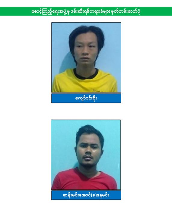 ဩဂုတ် ၁၄ ရက်နေ့တွင် အင်းစိန်-ရန်ကုန်-အင်းစိန်-လှော်ကား-အင်းစိန် မြို့ပတ် ရထားတွင် လုံခြုံရေး တာဝန်ထမ်းဆောင်လျက်ရှိသော ရဲတပ်ဖွဲ့ဝင် ၆ ဦးအား အလုံဘူတာနှင့် ပန်းလှိုင်အကြားတွင် အကြမ်းဖက်လက်နက်ကိုင်အဖွဲ့မှ ‌သေနတ်ဖြင့် ပစ်ခတ်၍ လက်နက် ၄ လက်နှင့်ခဲယမ်းအချို့ကို ယူဆောင်သွားသည့်ဖြစ်စဉ် ဖြစ်ပွားခဲ့ပြီး ဖြစ်စဉ်တွင်ပါဝင်ခဲ့သူ ၅ ဦးအား ဖမ်းဆီးရမိခဲ့သည့် သတင်းအား ထုတ်ပြန်ပြီးဖြစ်ပါသည်။