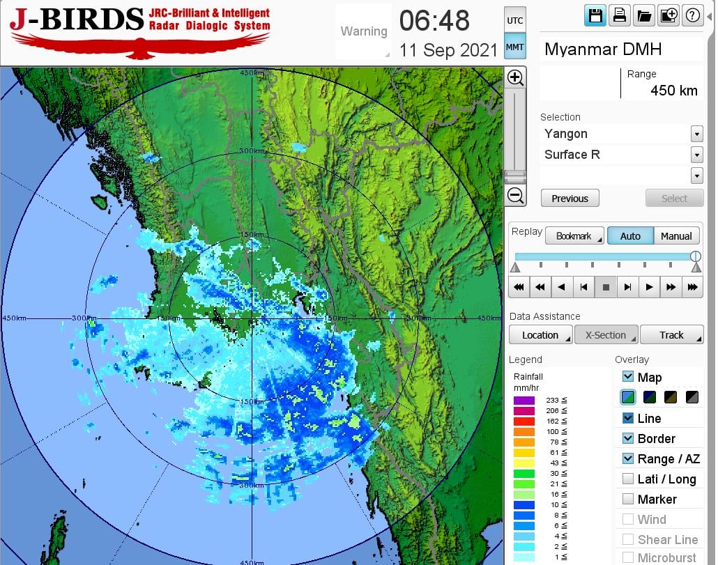 ယနေ့ညနေအထိခန့်မှန်းချက်။ ကချင်ပြည်နယ်နှင့် ရှမ်းပြည်နယ်(မြောက်ပိုင်းနှင့် အရှေ့ပိုင်း) တို့တွင် နေရာကျဲကျဲ၊ စစ်ကိုင်းတိုင်းဒေသကြီး၊ မန္တလေးတိုင်းဒေသကြီး၊ ရှမ်းပြည်နယ် (တောင်ပိုင်း)နှင့် ကယားပြည်နယ်တို့တွင် နေရာစိပ်စိပ်နှင့် ကျန်တိုင်းဒေသကြီးနှင့် ပြည်နယ် တို့တွင် နေရာအနှံ့အပြား မိုးထစ်ချုန်းရွာပြီး၊ ရန်ကုန်တိုင်းဒေသကြီး၊ ဧရာဝတီတိုင်းဒေသကြီး၊ တနင်္သာရီတိုင်းဒေသကြီး၊ ချင်းပြည်နယ်၊ ရခိုင်ပြည်နယ်၊ ကရင်ပြည်နယ်နှင့် မွန်ပြည်နယ်တို့တွင် နေရာကွက်၍ မိုးကြီးနိုင်ပါသည်။ ရွာရန်ရာနှုန်းပြည့် ဖြစ်ပါသည်။