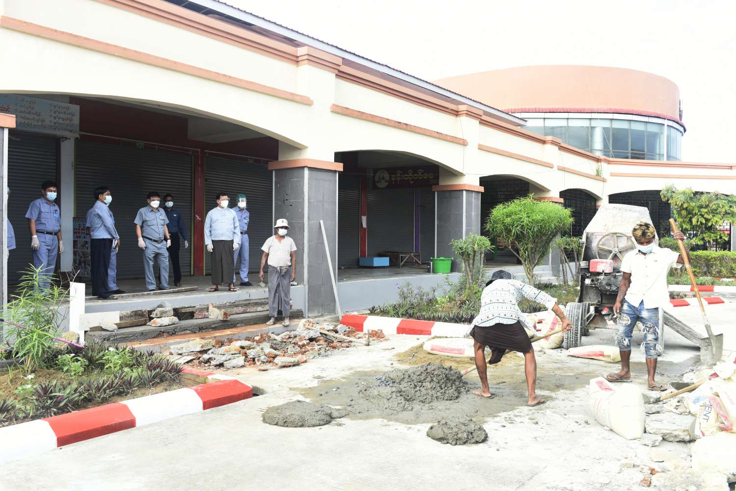 နေပြည်တော်သပြေကုန်းဈေးအတွင်း ကိုဗစ်-၁၉ ရောဂါကာကွယ်ရေးအတွက် နှာခေါင်းစည်း (Mask) များဝေငှခြင်းနှင့် ဈေးပြုပြင် ရေးလုပ်ငန်းဆောင်ရွက်မှုများ ကြည့်ရှုစစ်ဆေး
