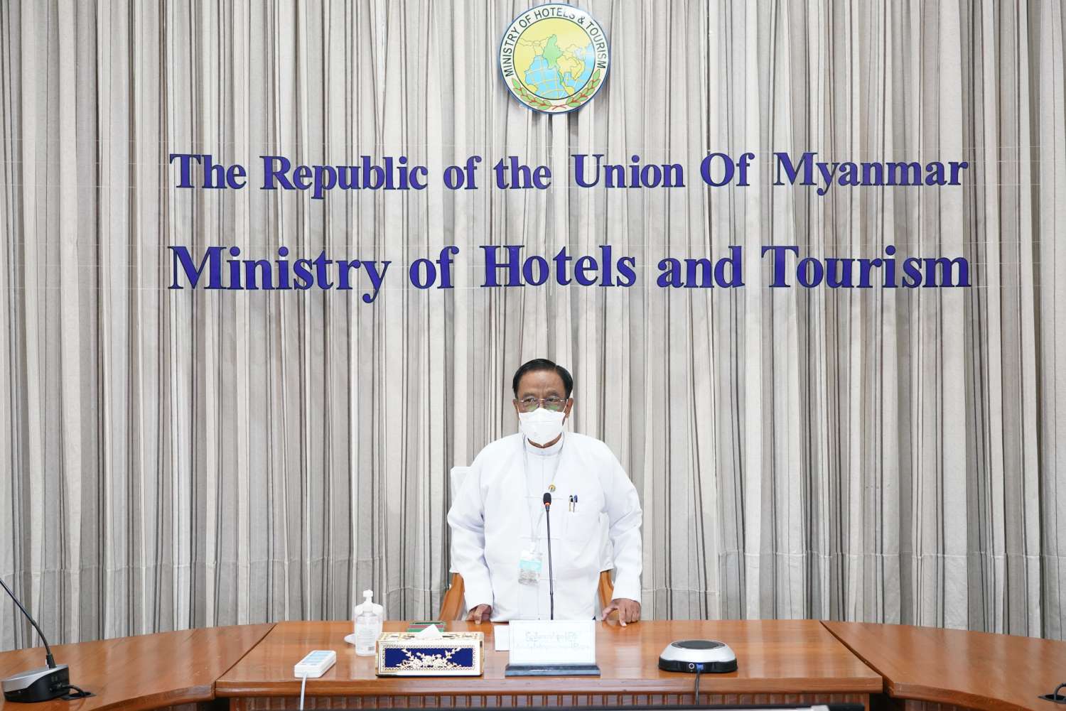 ဟိုတယ်နှင့် ခရီးသွားလာရေးဝန်ကြီးဌာန ပြည်ထောင်စုဝန်ကြီး ဒေါက်တာဌေးအောင်သည် ကိုဗစ်-၁၉ ကပ်ရောဂါကြောင့် ထိခိုက်ဆုံးရှုံးခဲ့ရသည့် ခရီးသွားလုပ်ငန်းနှင့် ဆက်စပ်နေသော စီးပွားရေးလုပ်ငန်းများကို ကုစားမှုများပေးနိုင်ရေးအတွက် ဟိုတယ်များတွင် ကိုဗစ်-၁၉ လုပ်ငန်း လမ်းညွှန်များနှင့်အညီ ဟိုတယ်ဝန်ဆောင်မှုလုပ်ငန်းများ ဆောင်ရွက်နေမှုကို နိုင်ငံပိုင် မီဒီယာများနှင့် လူမှုကွန်ယက်မီဒီယာများတွင် ထုတ်လွှင့်ပြသနိုင်ရေး ရုပ်သံရိုက်ကူးရေး ဆောင်ရွက်နိုင်ရန် နေပြည်တော်ရှိ ဟိုတယ်များမှ အထွေထွေမန်နေဂျာများနှင့် Elite Technology မှ တာဝန်ရှိသူများနှင့် တွေ့ဆုံညှိနှိုင်းအစည်းအဝေးကို ယနေ့ နံနက်ပိုင်းတွင် ဝန်ကြီးဌာန နီလာအစည်းအဝေးခန်းမ၌ ပြုလုပ်သည်။