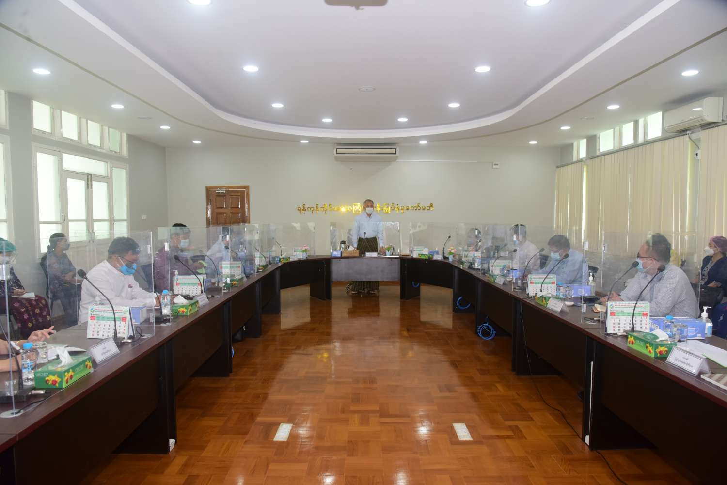 ရှေးဦးစွာ ပြည်ထောင်စုဝန်ကြီးနှင့်အဖွဲ့ကို ရန်ကုန်တိုင်းဒေသကြီးဦးစီးမှူးရုံး၊ ညွှန်ကြားရေးမှူး ဦးမျိုးခိုင်ဦးနှင့် OSS ရုံး၏ တာဝန်ရှိသူများက လုပ်ငန်းဆောင်ရွက်နေမှုကို ရှင်းလင်းတင်ပြရာ ပြည်ထောင်စုဝန်ကြီးက ရင်းနှီးမြှုပ်နှံသူများအပေါ် ဝန်ဆောင်မှုများပေးရာတွင် ပိုမိုလွယ်ကူ မြန်ဆန်စေရေးအတွက် Online စနစ် အသုံးပြု ဆောင်ရွက်ပေးနိုင်ရေး ပြင်ဆင်ဆောင်ရွက် စေရန်နှင့် ဌာနအချင်းချင်း ပူးပေါင်းဆောင်ရွက်ကာ ပိုမိုကောင်းမွန်သည့် ဝန်ဆောင်မှု‌ပေးနိုင်ရေး ကိစ္စများကိုလည်းကောင်း၊ စံပြုလုပ်ထုံးလုပ်နည်းများ အတိုင်းတိကျစွာ လိုက်နာဆောင်ရွက် ပေးခြင်းဖြင့် ရင်းနှီးမြှုပ်နှံမှုလုပ်ငန်းများ မြန်ဆန်သွက်လက်လာရေး ကိစ္စများကို လည်း‌ကောင်း၊ သက်ဆိုင်ရာဌာနများ၏ ဥပဒေနှင့်အညီ ပံ့ပိုးဆောင်ရွက်ပေးနိုင်မှု အခြေအနေများ၊ လုပ်ထုံး လုပ်နည်းများ ဖြေလျော့ဆောင်ရွက်ပေးနိုင်မည့် ကိစ္စရပ်များ ကိုလည်းကောင်း အကျယ်တဝင့် ရှင်းလင်းပြောကြားခဲ့ပြီး ရင်းနှီးမြှုပ်နှံမှုနှင့် စီးပွားရေး အသိုက်အဝန်း၏ အားကိုးယုံကြည်ရသည့် မိတ်ဖက်ဌာနများဖြစ်စေရေး ကြိုးပမ်း ဆောင်ရွက်ရန် အလေးထားမှာကြားသည်။ ထို့နောက် ပြည်ထောင်စုဝန်ကြီးသည် One Stop Service ဌာနအသီးသီးမှ လုပ်ငန်းဆောင်ရွက်နေမှုများနှင့် Online စနစ် ဆောင်ရွက်ရန်အတွက် ပြင်ဆင်ထားရှိမှုကို လှည့်လည်ကြည့်ရှုအားပေးသည်။