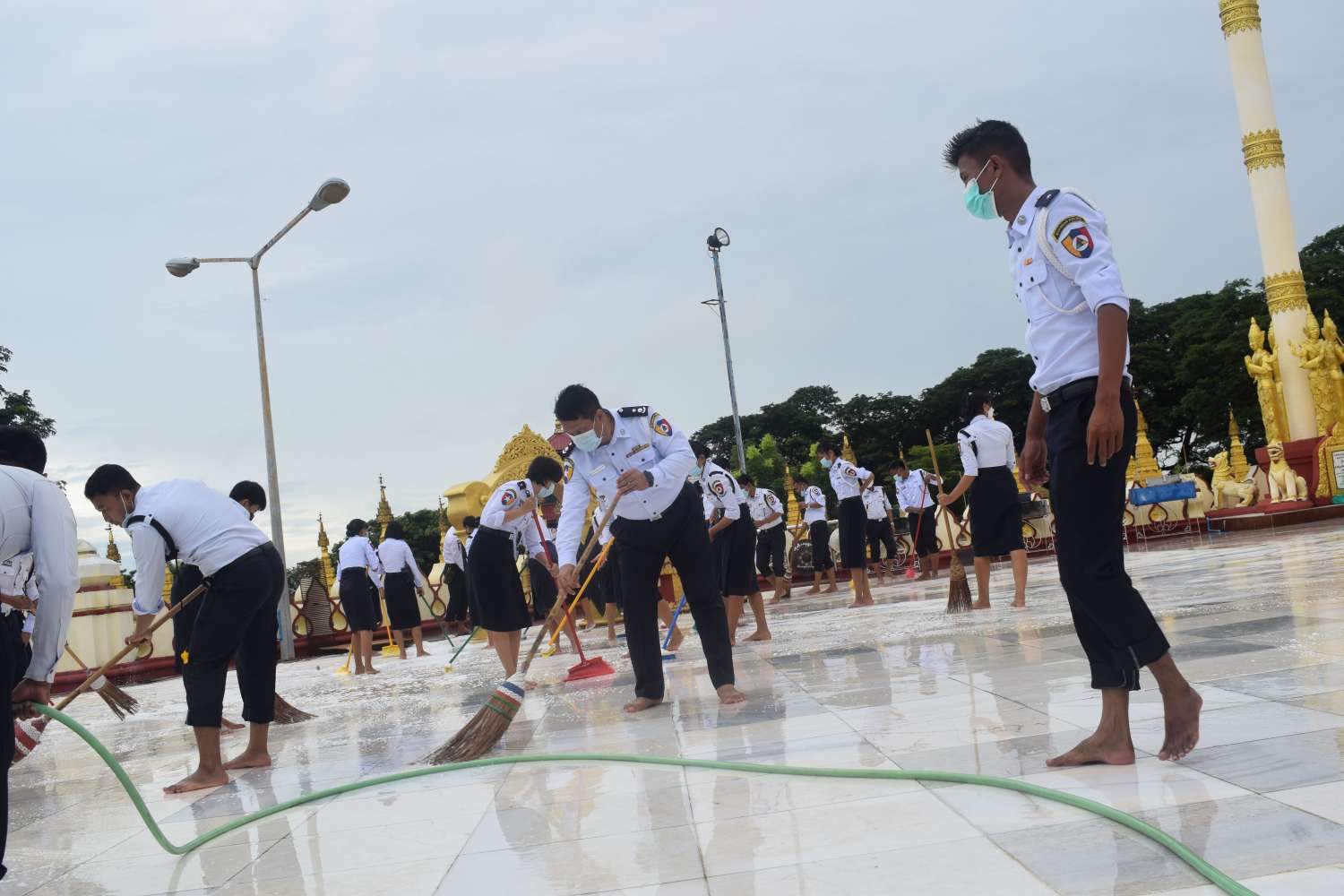 (၅၇)နှစ်မြောက် မြန်မာနိုင်ငံရဲတပ်ဖွဲ့နေ့အား ဂုဏ်ပြုကြိုဆိုသောအားဖြင့် ယာဉ်ထိန်းရဲတပ်ဖွဲ့ မှူး ရဲမှူးကြီး စိုးမြင့်ဦး၏ ကြီးကြပ်မှုဖြင့် အမှတ်(၁) ယာဉ်ထိန်းရဲ တပ်ဖွဲ့ခွဲမှူး ဒုရဲမှူးကြီး မျိုးအောင်မြင့်နှင့် အမှတ် (၁) ယာဉ်ထိန်းရဲဒုတပ်ဖွဲ့ခွဲမှူး ရဲမှူးမျိုးထိုက်ပါ အရာရှိ (၂၅)ဦး၊ အခြားအဆင့် (၇၃)ဦး စုစုပေါင်း (၉၈) ဦးတို့သည် ယနေ့ နံနက်ပိုင်းတွင် နေပြည်တော်ကောင် စီနယ်မြေ ဒက္ခိဏသီရိမြို့နယ် သမိုင်းဝင်ရန်အောင်မြင်ရွှေလက်လှစေတီတော်မြတ်ကြီး ပရဝုဏ် အတွင်း ဘုရားရေသပ္ပါယ်ခြင်းနှင့် ရင်ပြင်တော်သန့်ရှင်းရေးပြုလုပ်ခြင်းတို့ ဆောင်ရွက် ခဲ့ပြီးတပ်ဖွဲ့ဝင်များ စုပေါင်းလှူဒါန်း သောအလှူငွေကျပ် (၃ဝဝဝဝဝိ/) ကျပ်ကို ဂေါပကအဖွဲ့ ဥက္ကဋ္ဌ ဦးကြည်စိုးထံသို့ပေးအပ်လှူဒါန်းခဲ့ကြောင်း သိရသည်။