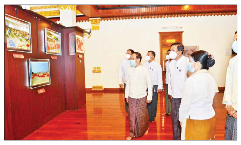 ထို့နောက် ပြည်ထောင်စုဝန်ကြီးသည် စာကြည့်တိုက်၊ ပြတိုက်၊ မော်ကွန်းတိုက်၊ သာသနာ့ဗိမာန်နှင့် နယ်မြေဌာနစုမှ ဝန်ထမ်းများနှင့် တွေ့ဆုံကာ နိုင်ငံတော်စီမံအုပ်ချုပ်ရေးကောင်စီအနေဖြင့် လည်း နိုင်ငံတော်ကိုဖွံ့ဖြိုးတိုးတက်စေရန် ဥပဒေနှင့်အညီ ဆောင်ရွက်လျက်ရှိပြီး ပြည်တွင်း ငြိမ်းချမ်းရေးကို တစ်နိုင်ငံလုံးပစ်ခတ် တိုက်ခိုက်မှုရပ်စဲရေး သဘောတူစာချုပ် (NCA)ပါအတိုင်း ဆောင်ရွက်လျက်ရှိကြောင်း၊ ကိုဗစ်-၁၉ ရောဂါ ကာကွယ်ရေးအတွက် ယခုနှစ်ကုန်တွင် မြန်မာနိုင်ငံ၏ လူဦးရေတစ်ဝက်အား ကာကွယ်ဆေးထိုးနှံနိုင်ရေး စီစဉ်ဆောင်ရွက်ထားရှိ ကြောင်း၊ အောက်ဆီဂျင်စက်ရုံများလည်း အောက်ဆီဂျင် ပြတ်လပ်မှုမရှိစေရေးအတွက် ဆောင်ရွက်လျက်ရှိကြောင်း၊ ဝန်ထမ်းများအနေဖြင့်လည်း နိုင်ငံတော်မှ မတရားအသင်းအဖြစ် ကြေညာထားသည့်အဖွဲ့အစည်းများနှင့် ပါဝင်ပတ်သက်မှုမရှိစေရေးနှင့် အန္တရာယ်ကို မြင်အောင် ကြည့်တတ်ရန်၊ မျိုးချစ်စိတ်ဓာတ်ရှိရန်နှင့် ဘာသာသာသနာကို တန်ဖိုးထားရန်လိုအပ်ကြောင်း၊ မည်သည့်အစိုးရ တက်တက် ဝန်ထမ်းစည်းမျဉ်း၊ စည်းကမ်း၊ နိုင်ငံ့ဝန်ထမ်းဥပဒေနှင့်အညီ ကြိုးစားတာဝန်ထမ်းဆောင်ရန် လိုအပ်ကြောင်း ပြောကြားသည်။
