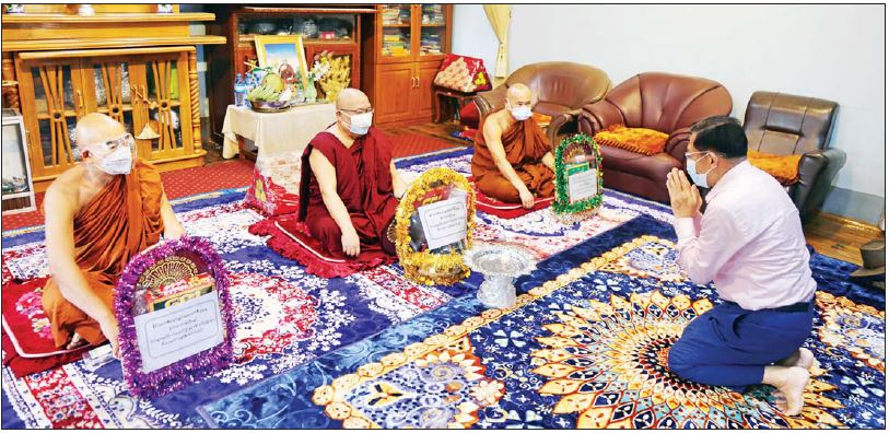 ၎င်းနောက် စေတီတော်မြတ်ကြီးအား လက်ယာရစ်လှည့်လည်ပူဇော်ပြီး စိန်နှင့်မြကျောင်းတိုက်အတွင်း၌ ဖောင်တော်ဦး စေတီတော်မြတ်ကြီးဆရာတော် ဘဒ္ဒန္တ ဝိဇယနှင့် သံဃာတော်များအား ဖူးမြော်ကြည်ညိုပြီး လှူဖွယ်ပစ္စည်းများနှင့် နဝကမ္မအလှူငွေများ ဆက်ကပ်လှူဒါန်းသည်။ ထို့နောက် ဆရာတော်ကြီး၏ ကျန်းမာရေးဆိုင်ရာများနှင့် အင်းလေးဒေသနှင့် စေတီတော်မြတ်ကြီး ရေရှည် တည်တံ့ခိုင်မြဲရေးအတွက် လိုအပ်သည်များကို လျှောက်ထားခဲ့သည်။