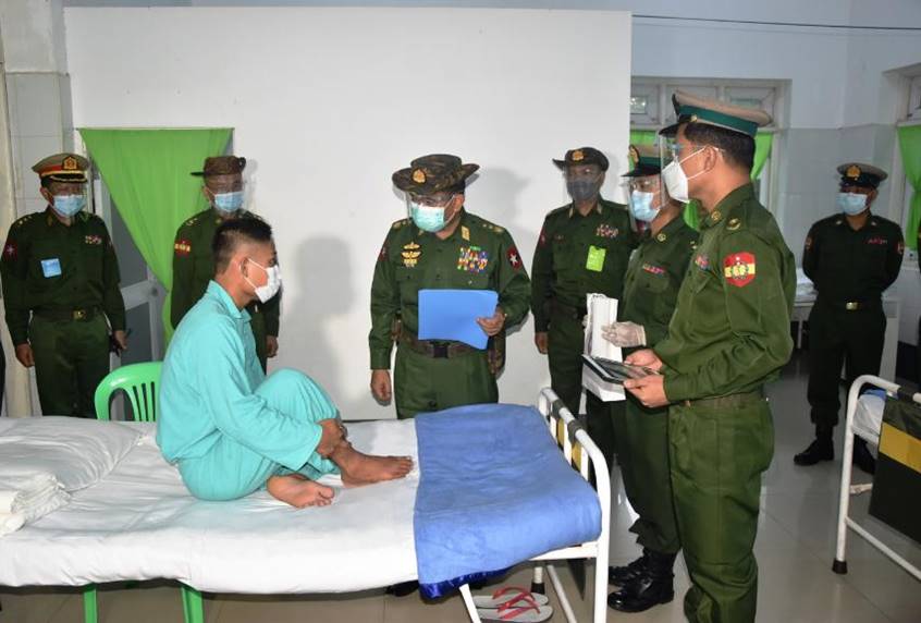 ရွှေကျင်မြို့ရှိ တပ်မတော်ဆေးရုံ၌ တက်ရောက်ဆေးကုသမှုခံယူနေသူများအား သွားရောက် ကြည့်ရှုအားပေး