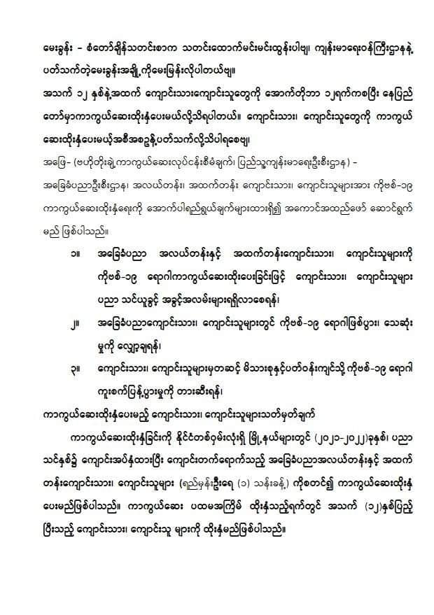 အသက် (၁၂) နှစ်နှင့်အထက် ကျောင်းသားကျောင်းသူများကို ကိုဗစ်-၁၉ ကာကွယ်ဆေးထိုးနှံပေးမှုအစီအစဉ်နှင့် ပတ်သက်၍ စံတော်ချိန်သတင်းစာမှ မေးမြန်းချက်