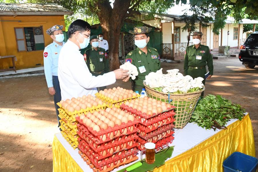 ကိုဗစ်-၁၉ ရောဂါ တတိယလှိုင်းဖြစ်ပွားမှုကြောင့် ရောဂါကာကွယ်၊ ထိန်းချုပ်၊ ကုသရေးလုပ်ငန်း များ ဆောင်ရွက်နေချိန်တွင် ဒေသတွင်းစားနပ်ရိက္ခာဖူလုံရေးနှင့် ပြည်သူများ၏ စားသောက် ရေးကို အထောက်အကူဖြစ်စေရန်အတွက် တိုင်းစစ်ဌာန ချုပ်နယ်မြေအသီးသီးရှိ အစိုးရ၊ တပ်မတော်နှင့် ပုဂ္ဂလိကပိုင် ဒေသတွင်းစိုက်ပျိုးမွေးမြူ ရေးနှင့် အခြားလူသုံးကုန်လုပ်ငန်းများ ကုန်ထုတ်လုပ်မှုရာနှုန်းပြည့်ထုတ်လုပ်နိုင်ရေး ဆောင်ရွက်လျက်ရှိရာ တိုင်းဒေသကြီးနှင့် ပြည်နယ် အသီးသီးမှ ဝန်ကြီးချုပ်များ၊ တိုင်းမှူးများနှင့် တာဝန်ရှိသူများက အဆိုပါနေရာများသို့ သွားရောက်ကြည့်ရှုကြပြီး လိုအပ်သည်များ ဖြည့်ဆည်းဆောင်ရွက်ပေး လျက်ရှိသည်။