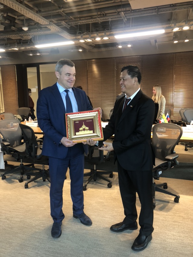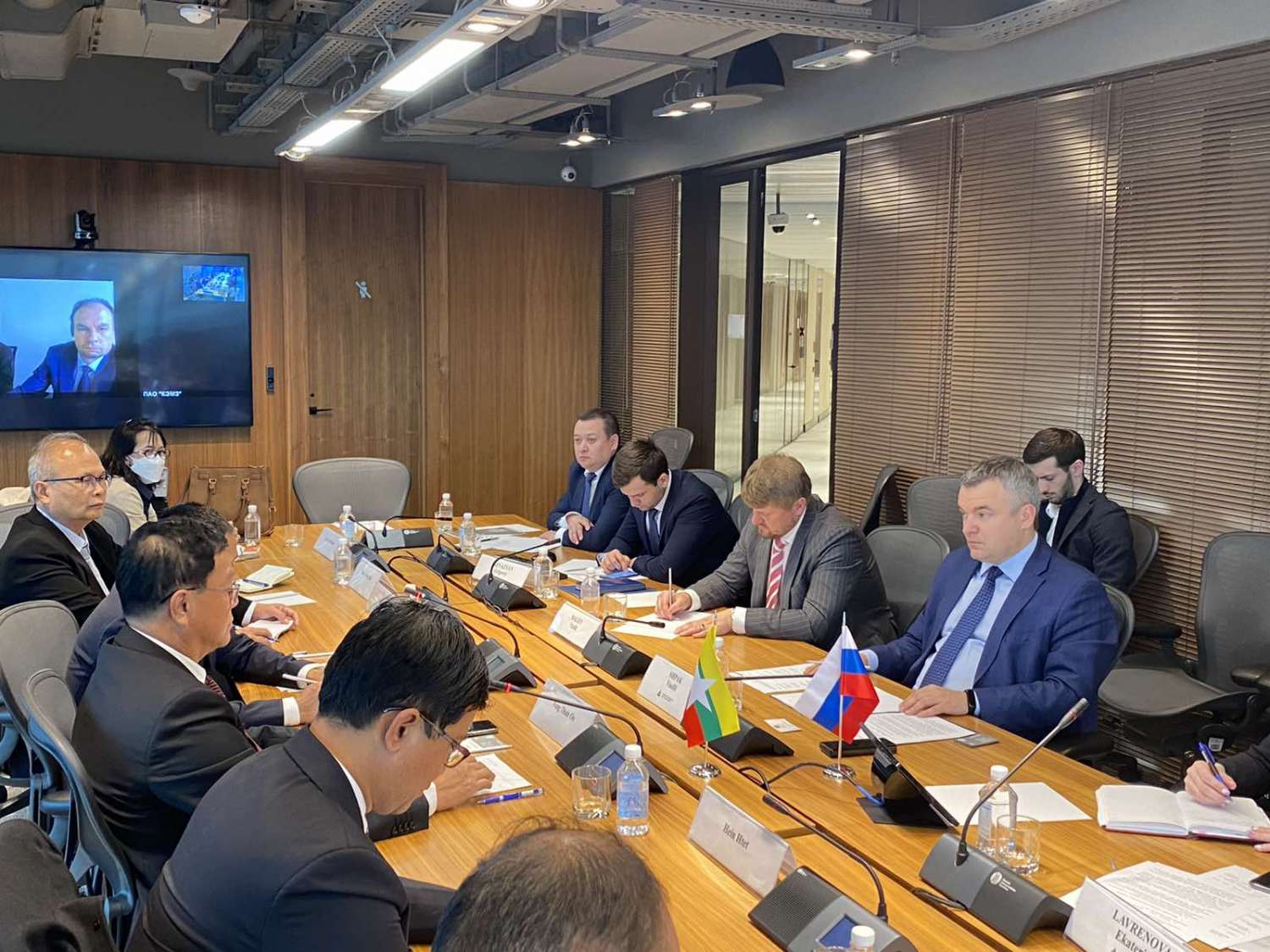 ယင်းနောက် ပြည်ထောင်စုဝန်ကြီးနှင့်အဖွဲ့သည် ဒေသစံတော်ချိန် မွန်းလွဲ ၂ နာရီတွင် ရုရှား ဖက်ဒရေးရှင်းနိုင်ငံ စက်မှုနှင့်ကူးသန်းရောင်းဝယ်ရေးဝန်ကြီးဌာနမှ ဒုတိယဝန်ကြီး Mr.Vasily Viktrovich Shpak နှင့် အဖွဲ့အားတွေ့ဆုံ၍ ရေနံ၊သဘာဝဓာတ်ငွေ့နှင့် လျှပ်စစ် ထုတ်လုပ် မှုဆိုင်ရာကိစ္စရပ်များ၊ မိမိတို့နိုင်ငံရှိ အင်ဂျင်နီယာများအတွက် မွမ်းမံသင်တန်း ပေးနိုင်ရေး ကိစ္စရပ် များ၊ သဘာဝပတ်ဝန်းကျင်နှင့် ပြန်ပြည့်မြဲစွမ်းအင်ဆိုင်ရာအသုံးပြုရေး ကိစ္စရပ်များ ကို ရင်းနှီးပွင့်လင်းစွာ ဆွေးနွေးခဲ့ကြကြောင်း သိရသည်။