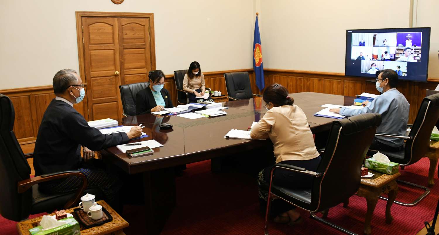 ကိုဗစ် -၁၉ ကြောင့် ဖြစ်ပေါ်လာနိုင်သည့် စီးပွားရေးသက်ရောက်မှုများအပေါ် ကုစားရေး လုပ်ငန်းကော်မတီ၏ အစည်းအဝေး အမှတ်စဉ် (၇/၂၀၂၁) ကို ယနေ့မွန်းလွဲပိုင်းတွင် ရင်းနှီး မြှုပ်နှံမှုနှင့် နိုင်ငံခြားစီးပွားဆက်သွယ်ရေးဝန်ကြီးဌာန၊ ရုံးအမှတ် (၁) ၌ ဗီဒီယိုကွန့်ဖရင့်ဖြင့် ကျင်းပသည်။