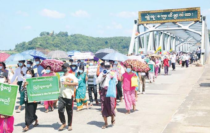 ၂၀၀၈ ခုနှစ် ဖွဲ့စည်းပုံအခြေခံဉပဒေနှင့်အညီ ဆောင်ရွက်လျက်ရှိသည့် နိုင်ငံတော်စီမံအုပ်ချုပ်ရေး ကောင်စီအား ထောက်ခံပွဲကို ယနေ့တွင် ရှမ်းပြည်နယ် (မြောက်ပိုင်း)၊ ကွမ်းလုံမြို့၊ လောက်ကိုင်မြို့နှင့် မိုင်းရယ်မြို့တို့၌ လည်းကောင်း၊ ရှမ်းပြည်နယ်(တောင်ပိုင်း)၊ ရပ်စောက်မြို့နယ်နှင့် လွိုင်လင်မြို့တို့၌ လည်းကောင်း၊ ရှမ်းပြည်နယ်(အရှေ့ပိုင်း)၊ မိုင်းတုံမြို့၌ လည်းကောင်း၊ တနင်္သာရီတိုင်းဒေသကြီး၊ ထားဝယ်မြို့နှင့် မြိတ်မြို့တို့၌လည်းကောင်း၊ ဧရာဝတီတိုင်းဒေသကြီး၊ ပုသိမ်မြို့၌ လည်းကောင်း၊ ရခိုင်ပြည်နယ်၊ တောင်ကုတ်မြို့၊ ကျောက်ဖြူမြို့နှင့် ဂွမြို့တို့၌ လည်းကောင်း၊ စစ်ကိုင်းတိုင်းဒေသကြီး၊ မော်လိုက်မြို့၌ လည်းကောင်း၊ ပဲခူးတိုင်း ဒေသကြီး၊ ရေတာရှည်မြို့၊ အုတ်တွင်းမြို့၊ ပေါက်ခေါင်းမြို့တို့၌ လည်းကောင်း အသီးသီးပြုလုပ်ကြပြီး ဆန္ဒဖော်ထုတ်ခဲ့ကြသည်။