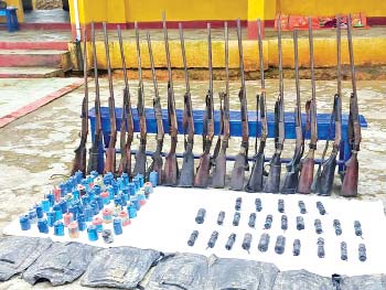 ထိုသို့ဆောင်ရွက်လျက်ရှိရာ ချင်းပြည်နယ်အတွင်း လုံခြုံရေးဆောင်ရွက်လျက်ရှိသော တပ်ဖွဲ့ဝင် များသည် ဒေသခံပြည်သူများနှင့် ပူးပေါင်း၍ စုံစမ်းရှာဖွေဖော်ထုတ်ခြင်းများ ဆောင်ရွက်ခဲ့ရာ အောက်တိုဘာ ၂၈ ရက် နံနက် ၁၀ နာရီခန့်တွင် ဟားခါးမြို့၊ ကျောဘုတ်ရပ်ကွက်အတွင်းရှိ RC သင်္ချိုင်းဝန်းအတွင်းရှိ မသင်္ကာဖွယ်အုတ်ဂူ ၄ လုံးအား သက်ဆိုင်ရာတာဝန်ရှိသူများနှင့်အတူ ဖွင့်ဖောက်စစ်ဆေးခဲ့ရာ ဂူသွင်းသင်္ဂြိုလ်ဟန်ပြုလုပ်ထားသည့် အုတ်ဂူအတွင်းမှ တစ်လုံး ထိုးသေနတ် ၁၇ လက်၊ PVC ပိုက်ဖြင့်ပြုလုပ်ထားသော လက်လုပ်မိုင်းမျိုးစုံ ၈၄ လုံးနှင့် ကျည်ကာအင်္ကျီ ၇ ထည်တို့အား တွေ့ရှိ သိမ်းဆည်းရမိခဲ့ကြောင်း သိရှိရသည်။