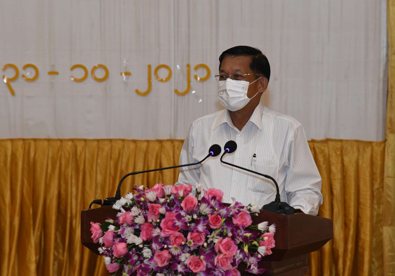 ကိုဗစ်-၁၉ ရောဂါကြောင့် နိုင်ငံ၏ယန္တရားများ ရပ်တန့်ခဲ့ရပြီး ပြန်လည် ဆောင်ရွက်ချိန်တွင် အနုပညာ အဖွဲ့အစည်းများအားလုံး ညီညီညွတ်ညွတ်ဖြင့် ပါဝင်ဆောင်ရွက်စေလိုကြောင်း၊ နိုင်ငံအတွင်းရှိ အဖွဲ့အစည်းများ အားလုံး ညီညီညွတ်ညွတ်ရှိပါက အားလုံးကို ရင်ဆိုင်ဖြတ်ကျော်နိုင်ကြောင်း၊ ၂၀၁၈ ခုနှစ်မှစတင်၍ ကျဆင်းခဲ့သည့်နိုင်ငံ၏ စီးပွားရေး ပြန်လည် ဦးမော့လာစေရန်အတွက် မိမိတို့အနေဖြင့် ကြိုးပမ်းဆောင်ရွက်လျက်ရှိကြောင်း၊ မိမိတို့နိုင်ငံသည် စိုက်ပျိုးမွေးမြူရေးနိုင်ငံတစ်ခု ဖြစ်သည့်အတွက် စိုက်ပျိုးမွေးမြူရေး ထုတ်ကုန်များအား ပြည်ပသို့တင်ပို့ရောင်းချ နိုင်ကြောင်း၊ ပညာရေးမြှင့်မှုများနှင့် စိုက်ပျိုး မွေးမြူရေးလုပ်ငန်းများဆောင်ရွက် ရာတွင် မိရိုးဖလာမှဖောက်ထွက်၍ ဆောင်ရွက်နိုင် မည်ဆိုပါက အခြေခံကောင်းများ ရှိသည့် မိမိတို့နိုင်ငံသည် လေးငါးနှစ်အတွင်း အာဆီယံ နိုင်ငံများထဲ၌ အလယ်အလတ် အဆင့်သို့ ရောက်ရှိနိုင်သကဲ့သို့ ၁၀ နှစ်ခန့်အတွင်း ထိပ်တန်းနိုင်ငံအဆင့်သို့ ရောက်ရှိနိုင်ကြောင်း၊ ထိုကဲ့သို့ဆောင်ရွက်နိုင်ရန်အတွက် အရေးအကြီးဆုံးလိုအပ်ချက်မှာ ပြည်တွင်းရှိ အဖွဲ့အစည်းအားလုံး ညီညီညွတ်ညွတ်ဖြင့် ဆောင်ရွက်ကြရန်လိုကြောင်း၊ အလားတူ နိုင်ငံတကာနှင့်ဆက်ဆံရေးတွင်လည်း လုပ်သင့် လုပ်ထိုက်သည့် လုပ်ငန်းများကို ဆောင်ရွက်နိုင်မည်ဆိုပါက မိမိတို့နိုင်ငံတိုးတက်မည်ဖြစ် ကြောင်း၊ နိုဝင်ဘာ ၁ ရက်မှစ၍ နိုင်ငံအတွင်းရှိ လုပ်ငန်းများအားလုံးပြန်လည် လည်ပတ် နိုင်ရေးခွင့်ပြုပေးပြီး ဖြစ်ကြောင်း၊ ထိုသို့ဆောင်ရွက်ရာတွင်လည်း ကိုဗစ်-၁၉ စည်းကမ်းချက်များကိုလည်း လိုက်နာ ဆောင်ရွက်ရန် လိုကြောင်း၊ ကိုဗစ်-၁၉ ရောဂါနှင့် ပတ်သက်၍ ပြည်သူများ စည်းကမ်း လိုက်နာစေရေး၊ နိုင်ငံနှင့်ပြည်သူအတွက် အကျိုးရှိမည့် လုပ်ငန်းရပ်များတွင် ကျရာအခန်းကဏ္ဍမှ ပါဝင်ဆောင်ရွက်ကြ စေလိုကြောင်း၊ အလားတူ မိမိတို့နိုင်ငံ၏ အမျိုးသားယဉ်ကျေးမှု စရိုက်လက္ခဏာများ မပျောက်ပျက်စေရေး ထိန်းသိမ်း ဆောင်ရွက်ကြစေလိုကြောင်း ပြောကြားသည်။