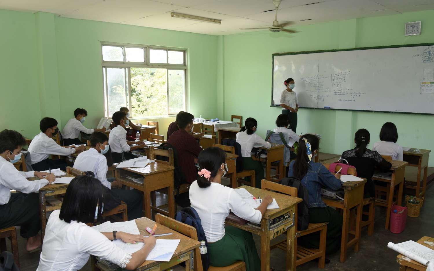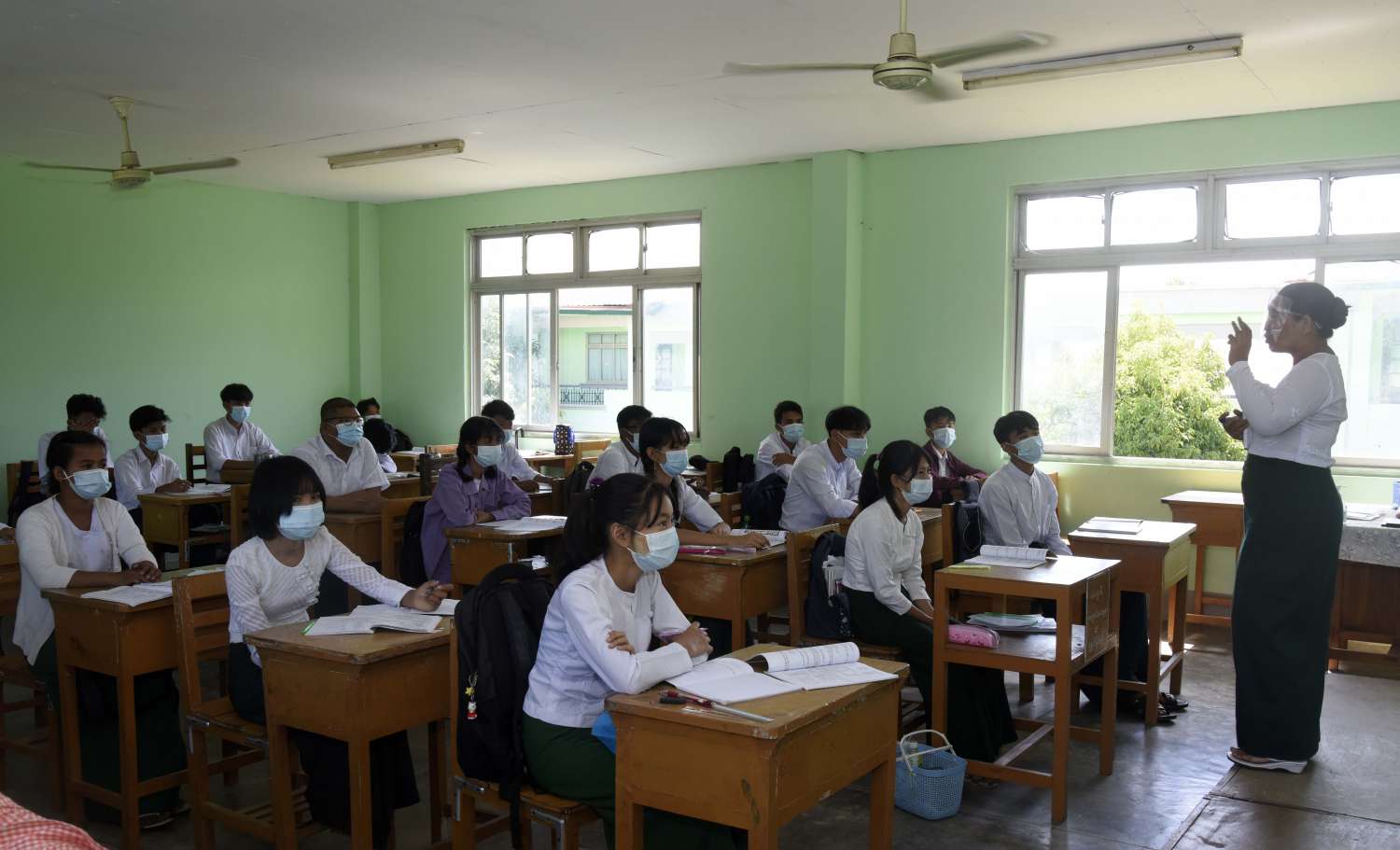 စာသင်ခန်းများအတွင်း၌လည်း ကိုဗစ် - ၁၉ကပ်ရောဂါ ကာကွယ်ရေး နည်းလမ်းများနှင့်အညီ တစ်ခန်းလျှင် လူဉီးရေ ၃၀ နှင့် ၄၀ အကြားသာ ထားရှိ၍ တစ်ဉီးလျှင် (၄)ပေ ခြားစီဖြင့် စနစ်တကျ စာပေသင်ကြားစေမှုကိုလည်းတွေ့မြင်ရသည်။
