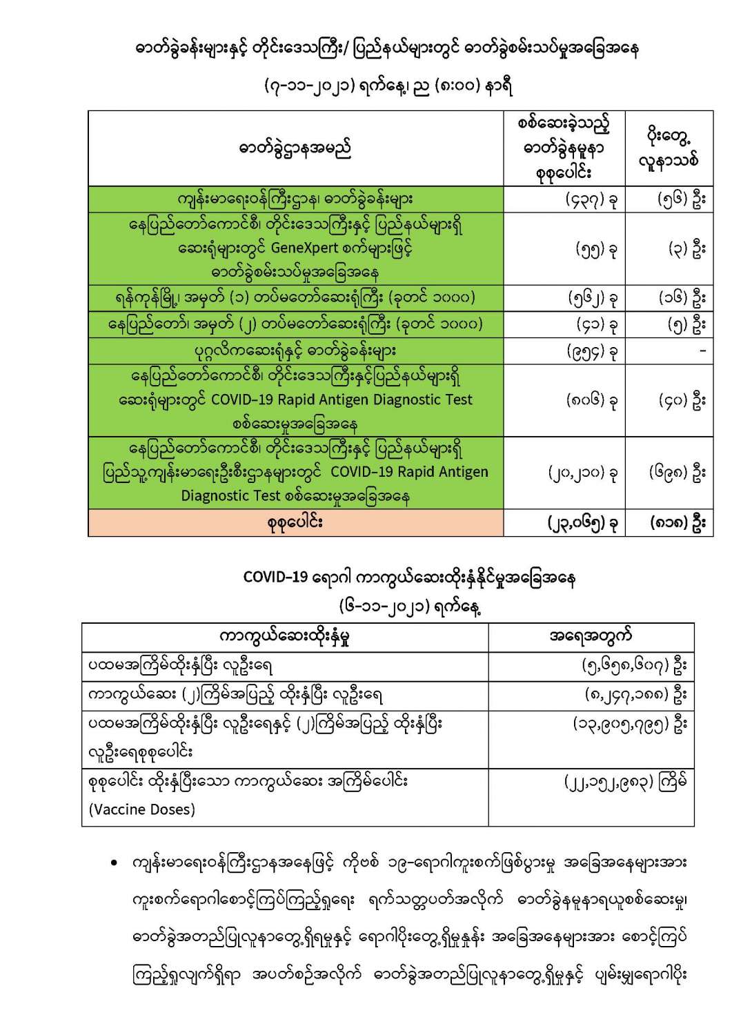 COVID-19 ရောဂါစောင့်ကြပ်ကြည့်ရှုမှုနှင့်ပတ်သက်၍ သတင်းထုတ်ပြန်ခြင်း
