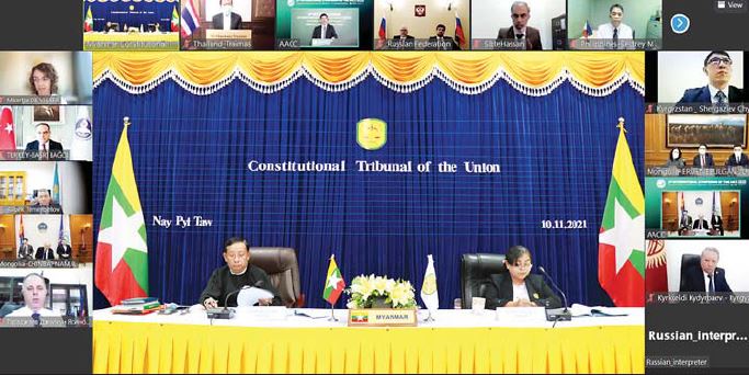 နိုင်ငံတော်ဖွဲ့စည်းပုံအခြေခံဥပဒေ ဆိုင်ရာ ခုံရုံးအဖွဲ့ဝင်များဖြစ်ကြ သည့် ဦးခင်မောင်ဦးနှင့် ဒေါ်နန်း စန္ဒာစမ်းတို့သည် နိုဝင်ဘာ ၁၀ ရက် နှင့် ၁၁ ရက်တို့တွင် အာရှနိုင်ငံ များ၏ ဖွဲ့စည်းပုံအခြေခံဥပဒေ ဆိုင်ရာတရားရုံးများနှင့်အဆင့်တူ အဖွဲ့အစည်းများအသင်း (AACCThe Association of Asian Constitutional Courts and Equivalent Institutions)e mosw အကြိမ်မြောက် အပြည်ပြည်  ဆိုင်ရာ စာတမ်းဖတ်ပွဲသို့ Video  Conferencingစနစ်ဖြင့် ပါဝင်တက် ရောက်ကြသည်။