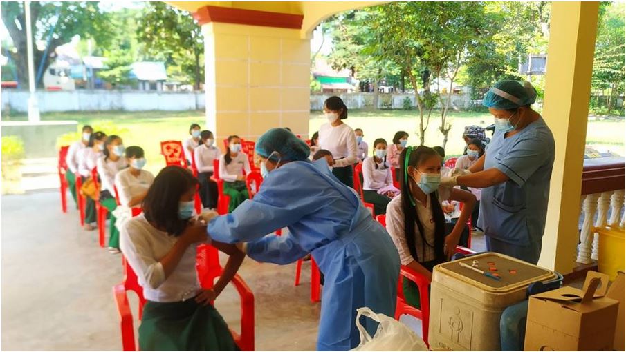တိုင်းဒေသကြီးနှင့် ပြည်နယ်အသီးသီးတို့၌ သံဃာတော်များ၊ သာသနာနွယ်ဝင်သီလရှင်များ၊ ဘာသာရေးခေါင်းဆောင်များ အပါအဝင် လူမျိုးမရွေး ဘာသာမရွေး အသက်(၅၅)နှစ်အထက် ဒေသခံပြည်သူများ၊ အကျဉ်းသား၊ အကျဉ်းသူများ၊ မသန်စွမ်းသူများ၊ တိုင်းရင်းသား လက်နက်ကိုင်အဖွဲ့များ၊ နာတာရှည်ရောဂါအခံရှိ သူများ၊ ကယ်ဆယ်ရေးစခန်းများ၊ ယာယီတိုက်ပွဲရှောင် စခန်းများအတွင်းရှိ ပြည်သူများ၊ အသက်(၁၂)နှစ်အထက် အခြေခံပညာအလယ်တန်းနှင့် အထက်တန်းအဆင့် ကျောင်းသား၊ ကျောင်းသူများ စသည့် ဦးတည်အုပ်စုများ သတ်မှတ်၍ တပ်မတော်မှ ဆေးအဖွဲ့များ၊ ပြည်သူ့ဆေးရုံများမှ ဆရာဝန်များ၊ သူနာပြုများ၊ ကျန်းမာရေး ဝန်ထမ်းများနှင့် စေတနာ့ဝန်ထမ်းများက ကာကွယ်ဆေးထိုးခြင်း လုပ်ငန်းများကို အင်တိုက်အားတိုက် ဆောင်ရွက်ပေးလျက်ရှိသည်။