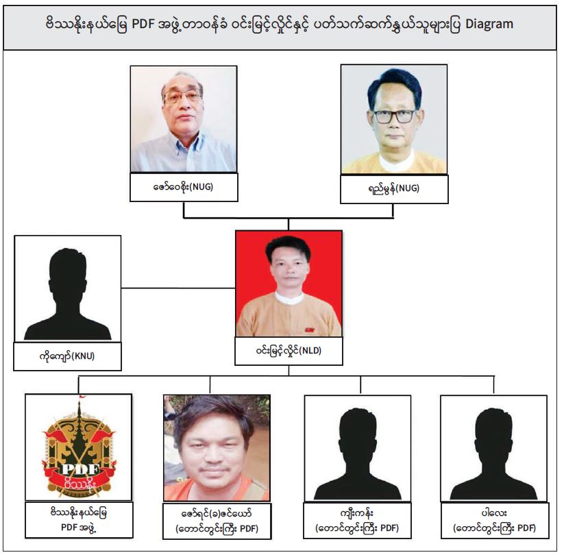 တရားခံ ဝင်းမြင့်လှိုင်သည် ဇူလိုင်လတွင် တောင်တွင်းကြီးမြို့၊ မကွေးမြို့၊ မြို့သစ်မြို့၊ နတ်မောက်မြို့၊ ရေစကြိုမြို့၊ အောင်လံမြို့များတွင် တာဝန်ခံများခန့်အပ်၍ ဗိဿနိုးနယ်မြေ PDF အဖွဲ့အား ဖွဲ့စည်းခဲ့ကြောင်း၊ ထို့အပြင် တရားခံပြေး ဇော်ဝေစိုး၊ တရားခံပြေး ရည်မွန်တို့နှင့် ချိတ်ဆက်၍ ငွေကြေးများတောင်းခံခဲ့ပြီး လက်နက် ခဲယမ်းနှင့် ဖောက်ခွဲရေးပစ္စည်းများ ဝယ်ယူခဲ့ကြောင်း၊ ရရှိလာသည့် လက်နက်ခဲယမ်းနှင့် ဖောက်ခွဲရေးပစ္စည်းများအား အသုံးပြု၍ မကွေးတိုင်းဒေသကြီးအတွင်း ဖောက်ခွဲဖျက်ဆီးမှုနှင့် အကြမ်းဖက် လုပ်ရပ်များ လုပ်ဆောင်ခဲ့ကြောင်း သိရှိရသည်။
