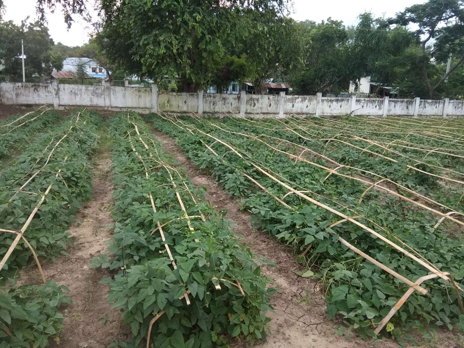 နတ်မောက်မြို့နယ် စိုက်ပျိုးရေးဦးစီးဌာနရုံးဝန်းအတွင်း၌ စိုက်ပျိုးထားသော စားဖိုဆောင်ပဲတိုင်ထောင်သီးနှံများ အောင်မြင်ဖြစ်ထွန်း