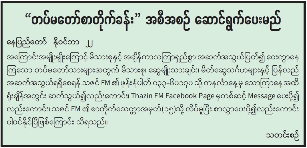 တပ်မတော်စာတိုက်ခန်း အစီအစဉ် ဆောင်ရွက်ပေးမည်