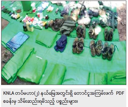 မတ်လ ၃၁ ရက်တွင် တောင်ငူမြို့၊ အမေ့အိမ်ဟိုတယ်၌ အကြမ်းဖက် UNRA အဖွဲ့ဝင် တရားခံ မျိုးမြင့်အောင်(ခ)အရှည်ကြီး(ခ)ဆံရှည်၊ ဩဂုတ်လ ၂၃ ရက်တွင် ဒဂုံဆိပ်ကမ်း မြို့နယ်၌ Music Zone KTV ၊ ကမာရွတ်၊ မြောက်ဥက္ကလာနှင့် သင်္ဃန်းကျွန်းမြို့နယ်တို့ရှိ EPC ရုံးများ အပါအဝင် ရန်ကုန်မြို့တွင်း ဖောက်ခွဲဖျက်ဆီးရေးလုပ်ငန်းများ ဆောင်ရွက်ခဲ့သော တရားခံများ ဖမ်းဆီးရမိမှု ဖြစ်စဉ်မှ ဝေယံသိန်း(ခ)ဗစ်တာနှင့် နိုဝင်ဘာလ ၁ ရက်တွင် တောင်ငူမြို့၌ ဖမ်းဆီးရမိ တရားခံ ကျော်ကျော်(ခ) ကချင်ကျော်ကျော်တို့၏ ထွက်ဆိုချက်များအရ ထန်းတပင်မြို့နယ်၊ တောကုန်း ကျေးရွာ၏ အရှေ့ဘက်တောင်ကုန်းများ၌ ပြည်မြို့နယ် NLD ပါတီမှ အမှတ်(၂)တိုင်းဒေသကြီး လွှတ်တော်ကိုယ်စားလှယ်ဟောင်း ကျော်ဇေယျ၏ ပြည်အကြမ်းဖက် PDF အဖွဲ့၊ တောင်ငူမြို့နယ် NLD ပါတီမှ အမှတ်(၂)တိုင်းဒေသကြီး လွှတ်တော်ကိုယ်စားလှယ်ဟောင်း မိုးမခ၏ တောင်ငူအကြမ်းဖက် PDF အဖွဲ့၊ ဖြူးမြို့နယ် NLD ပါတီမှ ပြည်သူ့လွှတ်တော်ကိုယ်စားလှယ်ဟောင်း ကျော်အေးဝင်း၏ ဖြူးအကြမ်းဖက် PDF အဖွဲ့များ သည် KNLA တပ်မဟာ(၂)မှ စစ်ဆင်ရေးမှူးအဆင့်ရှိ မောင်ရွှေနှင့် ညှိနှိုင်း၍ PDF အကြမ်းဖက်သင်တန်းများ ဖွင့်လှစ်၍ အဖျက်အမှောင့်လုပ်ငန်းများ ဆောင်ရွက်ကာ အပြစ်မဲ့ပြည်သူများအား လုပ်ကြံသတ်ဖြတ်ခြင်းများ ဆောင်ရွက်နေကြောင်း သိရှိရသဖြင့် တပ်မတော်က နယ်မြေစိုးမိုးရေး ဆောင်ရွက်ခဲ့ရာ PDF အကြမ်းဖက် စခန်းနေရာ ၅ နေရာအား ဖော်ထုတ်သိမ်းပိုက်ရရှိခဲ့ပြီး အဆိုပါစခန်းများအတွင်းမှ အကြမ်းဖက်သမား ၅ ဦး အပါအဝင် လက်နက်/ခဲယမ်းနှင့် ဆက်စပ်ပစ္စည်းများအား သိမ်းဆည်းရမိခဲ့ကြောင်း သိရှိရသည်။