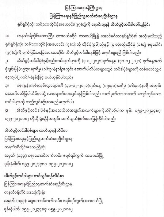 ရုပ်ရှင်ရုံသုံး သစ်သားထိုင်ခုံအဟောင်း (၉၇) တွဲကို ရောင်းချရန် အိတ်ဖွင့်တင်ဒါခေါ်ယူခြင်း