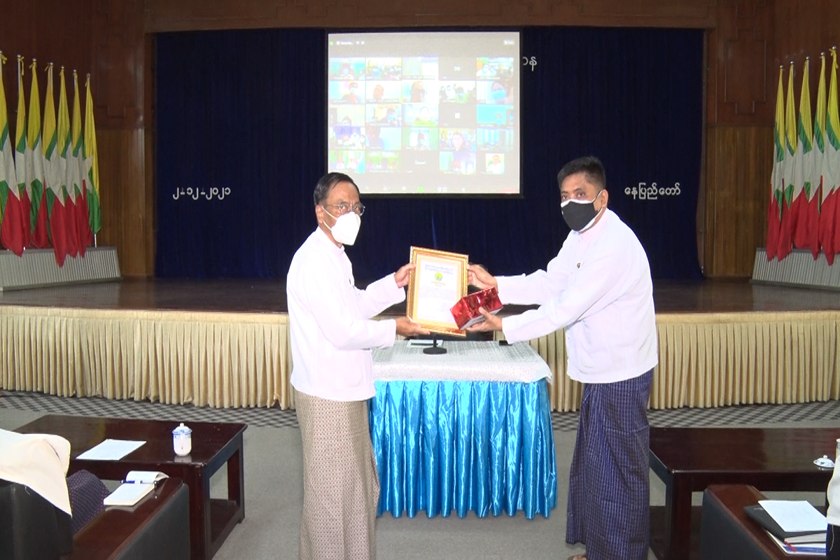 ယင်းနောက် ပြည်ထောင်စုဝန်ကြီးက လက်ထောက်ညွှန်ကြားရေးမှူး၊ ဦးတေဇာဥုတ်ကျော်အား ဂုဏ်ပြုမှတ်တမ်းလွှာနှင့် ဂုဏ်ပြု ဆုငွေပေးအပ်၍ နိဂုံးချုပ်အမှာ စကားပြော ကြား ခဲ့ကြောင်း သိရသည်။