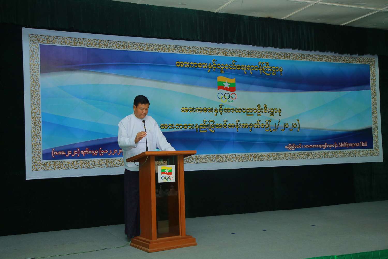 အားကစားနည်းပြသင်တန်း အမှတ်စဉ် (၂/၂၀၂၁) သင်တန်းဆင်းပွဲ အခမ်းအနားကို ယနေ့ နံနက် (၉) နာရီခွဲတွင် နေပြည်တော် အားကစားလေ့ကျင့်ရေးစခန်း (Gold Camp) ရှိ (Multipurpose Hall) ၌ ကျင်းပသည်။