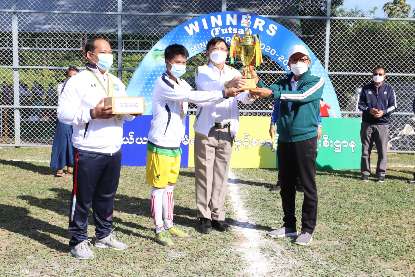 ထို့နောက် ပထမအကြိမ် ပြည်ထောင်စုဝန်ကြီးဖလား ဖူဆယ်ဘောလုံး အားကစားပြိုင်ပွဲ ကိုကျင်းပပြီး ဆုရအသင်းများကို ပြည်ထောင်စုဝန်ကြီး ဒုတိယဝန်ကြီးနှင့် တာဝန်ရှိသူများက ဂုဏ်ပြုဆုများ ပေးအပ်ချီးမြှင့်ခဲ့ကြကြောင်း သတင်းရရှိသည်။
