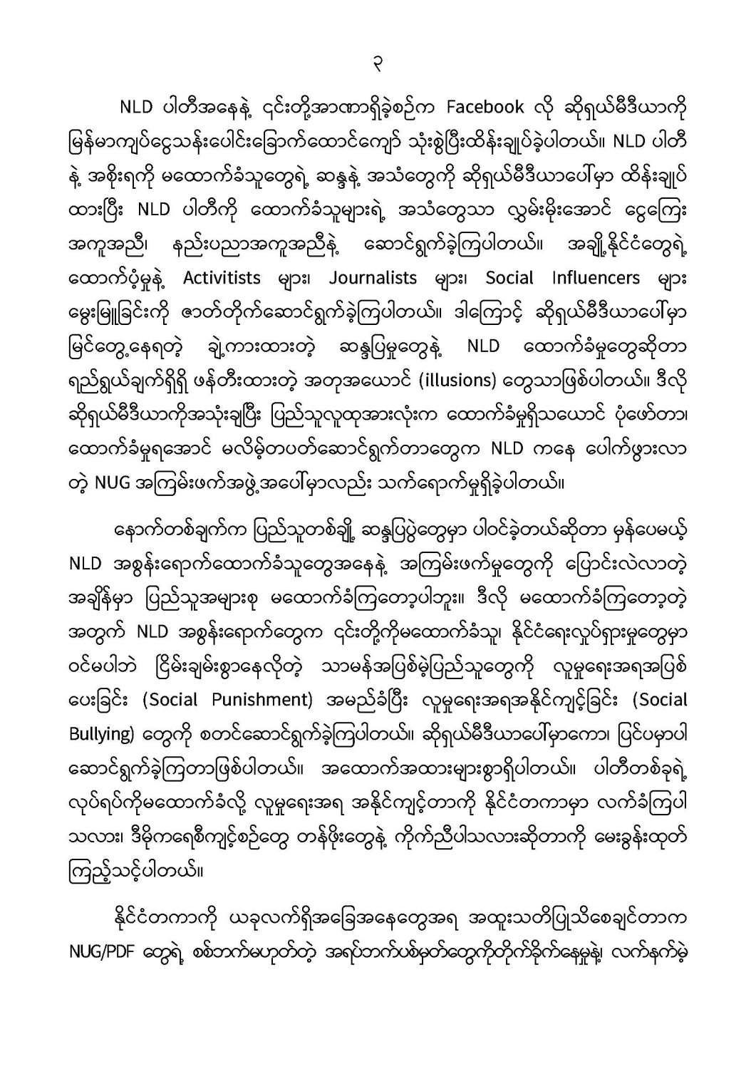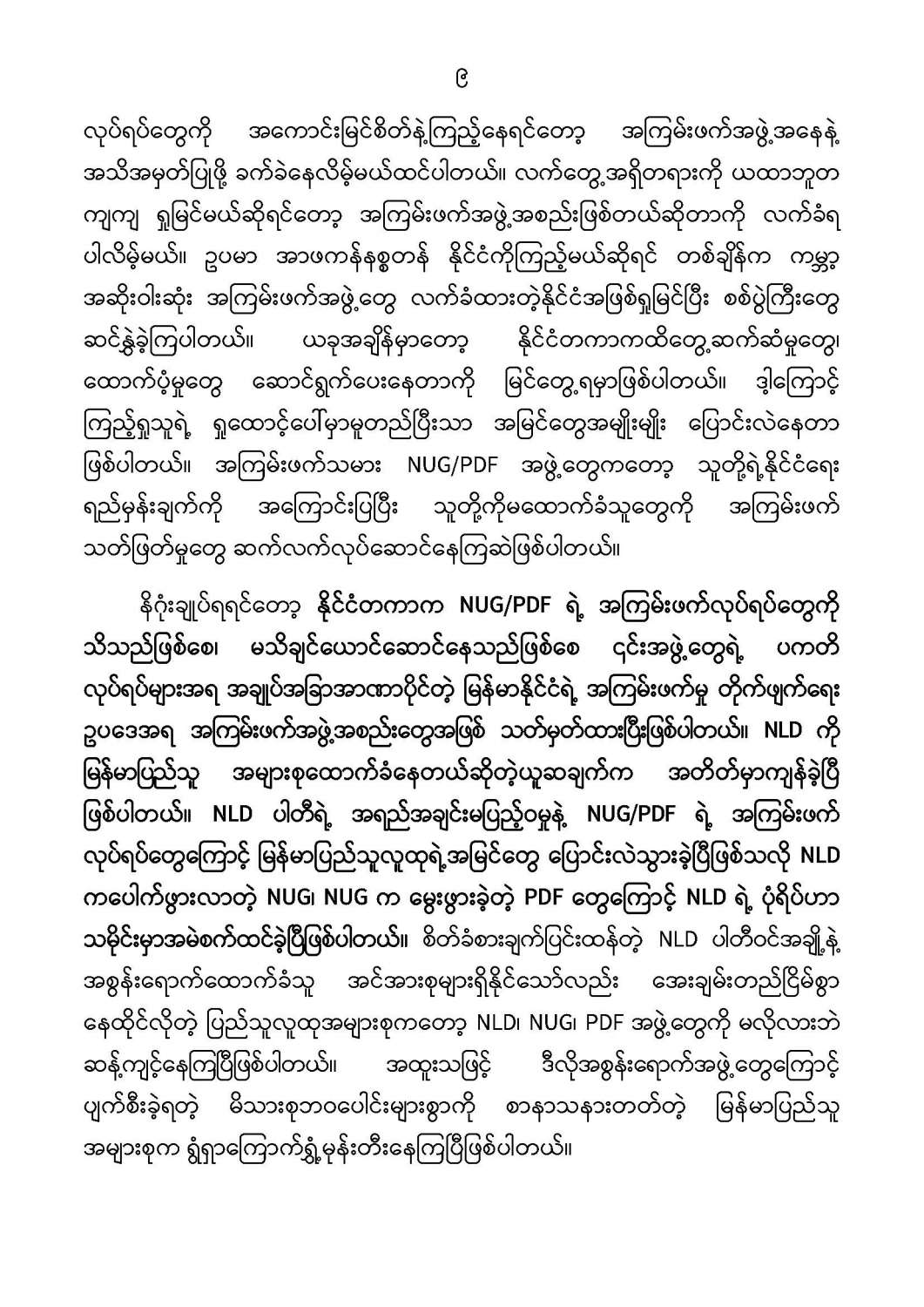 ဦးစီးဌာနနှင့် လုပ်ငန်းများ၏ ကြေညာချက်များ