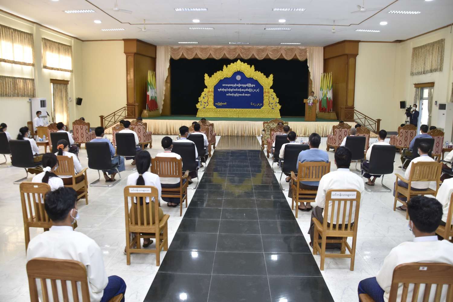 သာသနာရေးနှင့်ယဉ်ကျေးမှုဝန်ကြီးဌာန၌ တာဝန်ထမ်းဆောင်မည့် ပြည်ထောင်စုတိုင်းရင်း သားလူငယ်များ စွမ်းရည်ဖွံ့ဖြိုးရေးဒီဂရီကောလိပ် (ရန်ကုန်၊စစ်ကိုင်း) တို့မှ ကျောင်းဆင်း ဝန်ထမ်းများအထက် ဖွင့်လှစ်သည့် ရက်တိုလုပ်ငန်းခွင်သင်တန်းအမှတ်စဉ် (/၂၀၂၁) ဖွင့်ပွဲအခမ်း အနားကို ယနေ့နံနက် နာရီတွင် အဆိုပါဝန်ကြီးဌာန၊ စုပေါင်းအစည်းအဝေးခန်းမ၌ ကိုဗစ်-၁၉ ရောဂါ ကာကွယ်၊ ထိန်းချုပ်ရေးဆိုင်ရာ ညွှန်ကြားချက်များနှင့်အညီ ကျင်းပသည်။