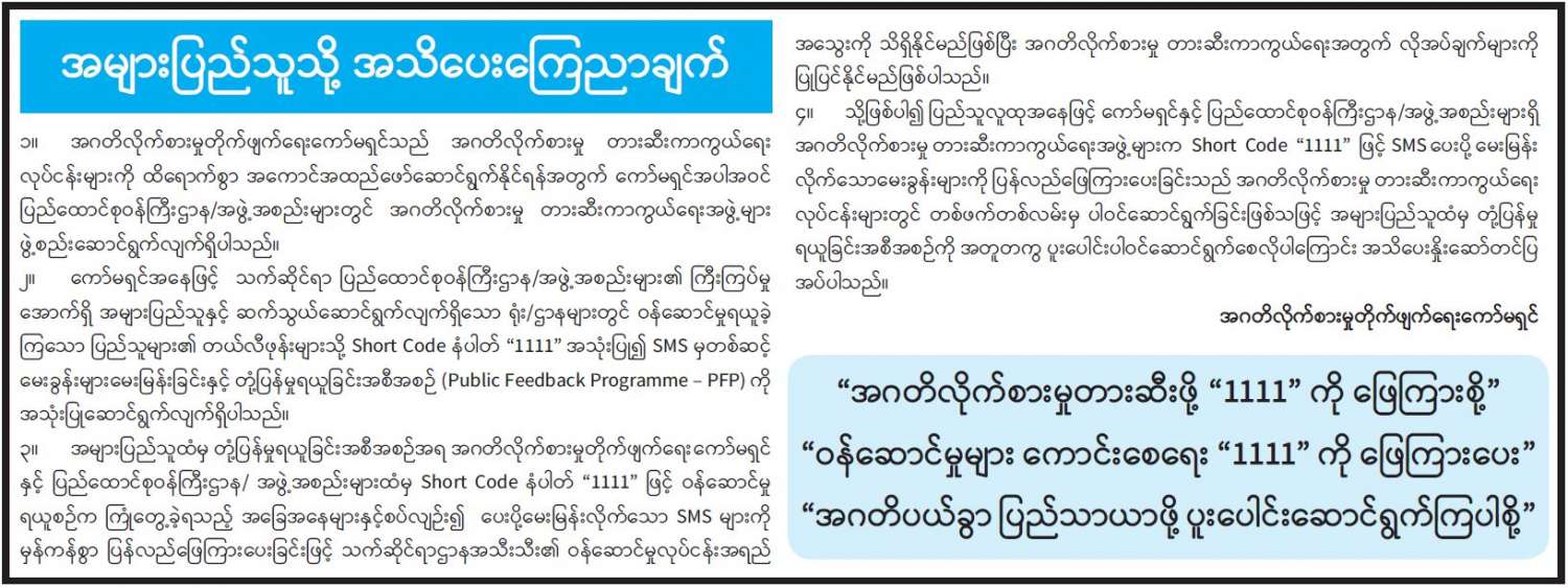 အများပြည်သူသို့ အသိပေးကြေညာချက်