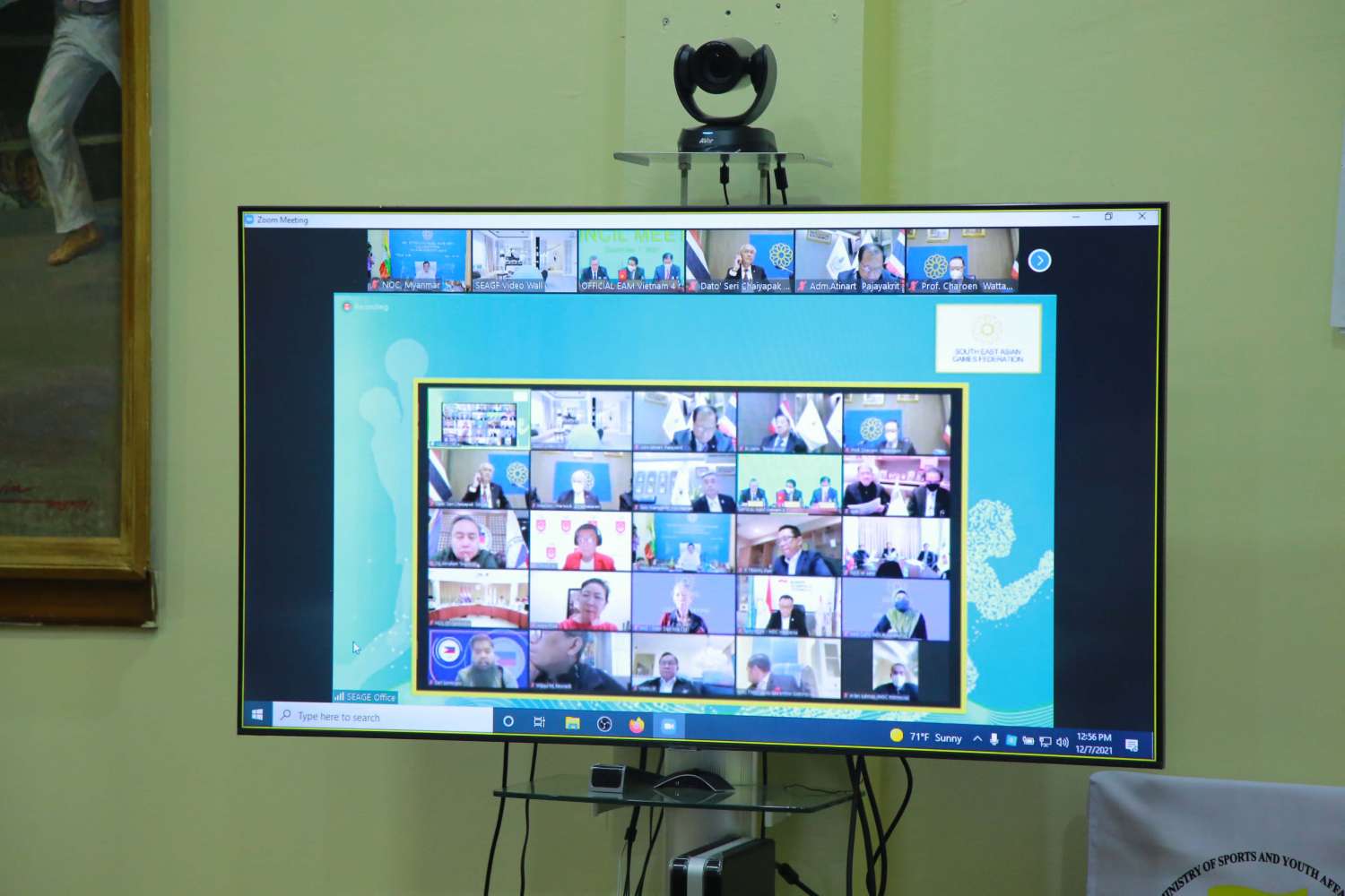 SEA GAMES ပြိုင်ပွဲများ အောင်မြင်စွာကျင်းပနိုင်ရေးအတွက် South East Asian Games Federation (SEAGF) Council အစည်းအဝေးကို ယနေ့မွန်းလွဲ (၁၂) နာရီခွဲတွင် နေပြည်တော်ရှိ ရုံးအမှတ် (၃၁) အစည်းအဝေးခန်းမ၌ ဗီဒီယိုကွန်ဖရင့်စနစ်ဖြင့် ကျင်းပသည်။