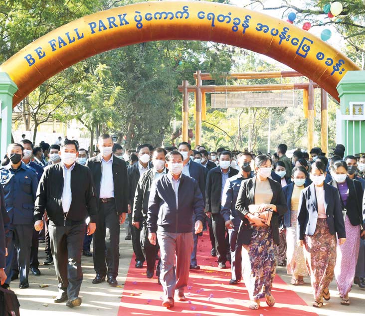 နိုင်ငံတော်စီမံအုပ်ချုပ်ရေးကောင်စီဥက္ကဋ္ဌ နိုင်ငံတော်ဝန်ကြီးချုပ် ဗိုလ်ချုပ်မှူးကြီး မင်းအောင်လှိုင်သည် ယနေ့နံနက်ပိုင်းတွင် ကျင်းပပြုလုပ်သည့် ပြင်ဦးလွင်မြို့ ပွဲကောက် ရေတံခွန်အပန်းဖြေစခန်း (B.E FALLS) အဆင့််မြှင့်တင်ဖွင့်လှစ်ခြင်းအခမ်းအနားသို့ တက်ရောက်ချီးမြှင့်သည်။