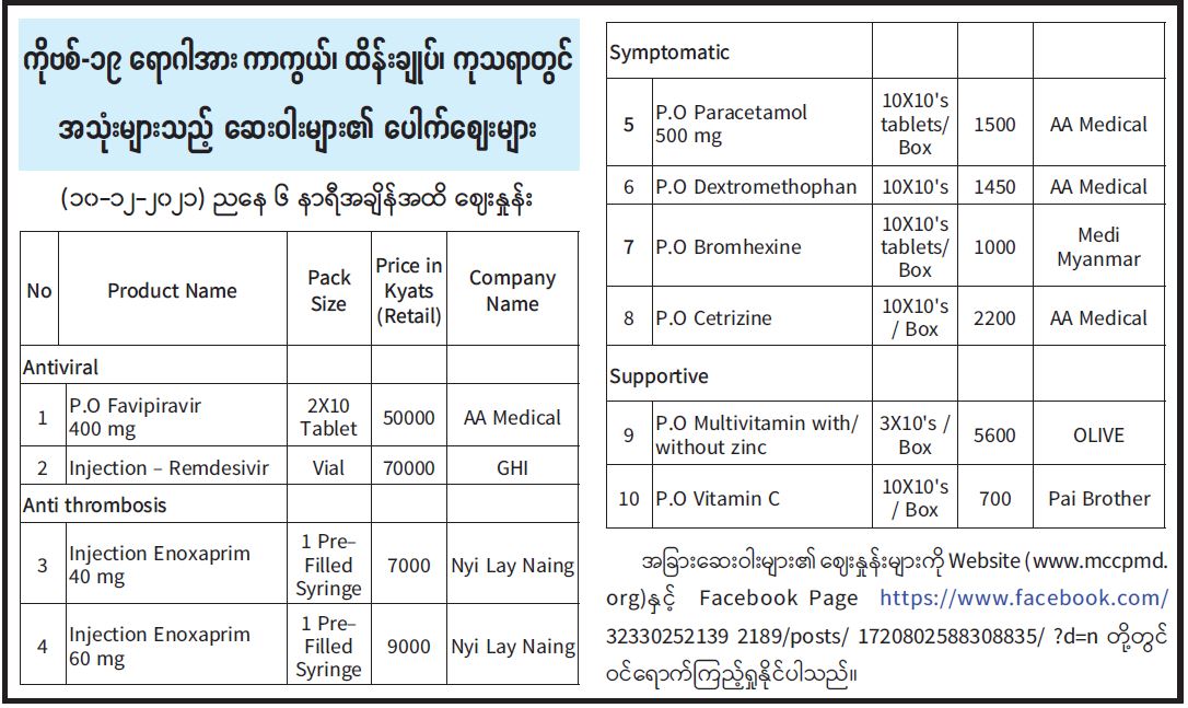 ရန်ကုန်မြို့နှင့် မန္တလေးမြို့အတွက် ရည်ညွှန်းလက်ကားဈေးနှုန်းများနှင့် ပြည်ထောင်စုနယ်မြေ နေပြည်တော်၊ တိုင်းဒေသကြီး/ပြည်နယ် မြို့တော်များအတွက် ရည်ညွှန်းလက်လီဈေးနှုန်းများ