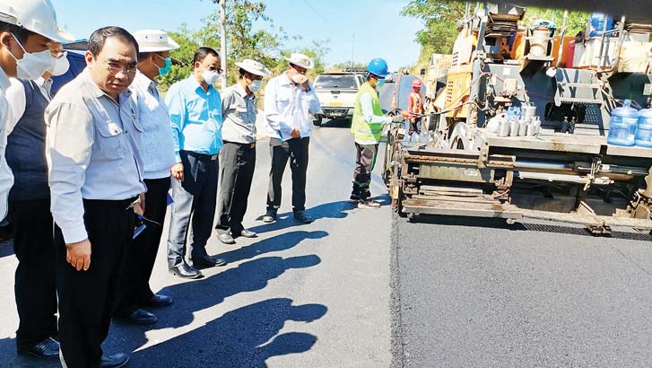 ဆက်လက်၍ ဒုတိယဝန်ကြီးသည် မော်လမြိုင်သံဖြူဇရပ် - ရေး - ထားဝယ် လမ်းအပိုင်း မိုင်တိုင် အမှတ် (၇၆/၃) နှင့် (၇၆/၄) ကြားတွင် (၂၄)ပေ အကျယ် ကတ္တရာကွန်ကရစ် (AC)ခင်းနေမှု အခြေ အနေကို ကြည့်ရှုစစ်ဆေးပြီး လိုအပ်သည်များ မှာကြားသည်။