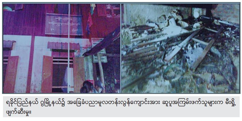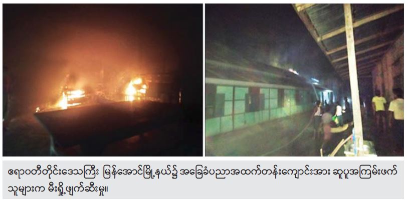 မြန်အောင်မြို့နယ်နှင့် ဂွမြို့နယ်တို့၌ ကျောင်းသား၊ ကျောင်းသူများ အေးချမ်းစွာ ပညာသင်ကြား နေမှုအား မလိုလားသူ အကြမ်းဖက်သမားများက စာသင်ကျောင်းများအား မီးရှို့ဖျက်ဆီး