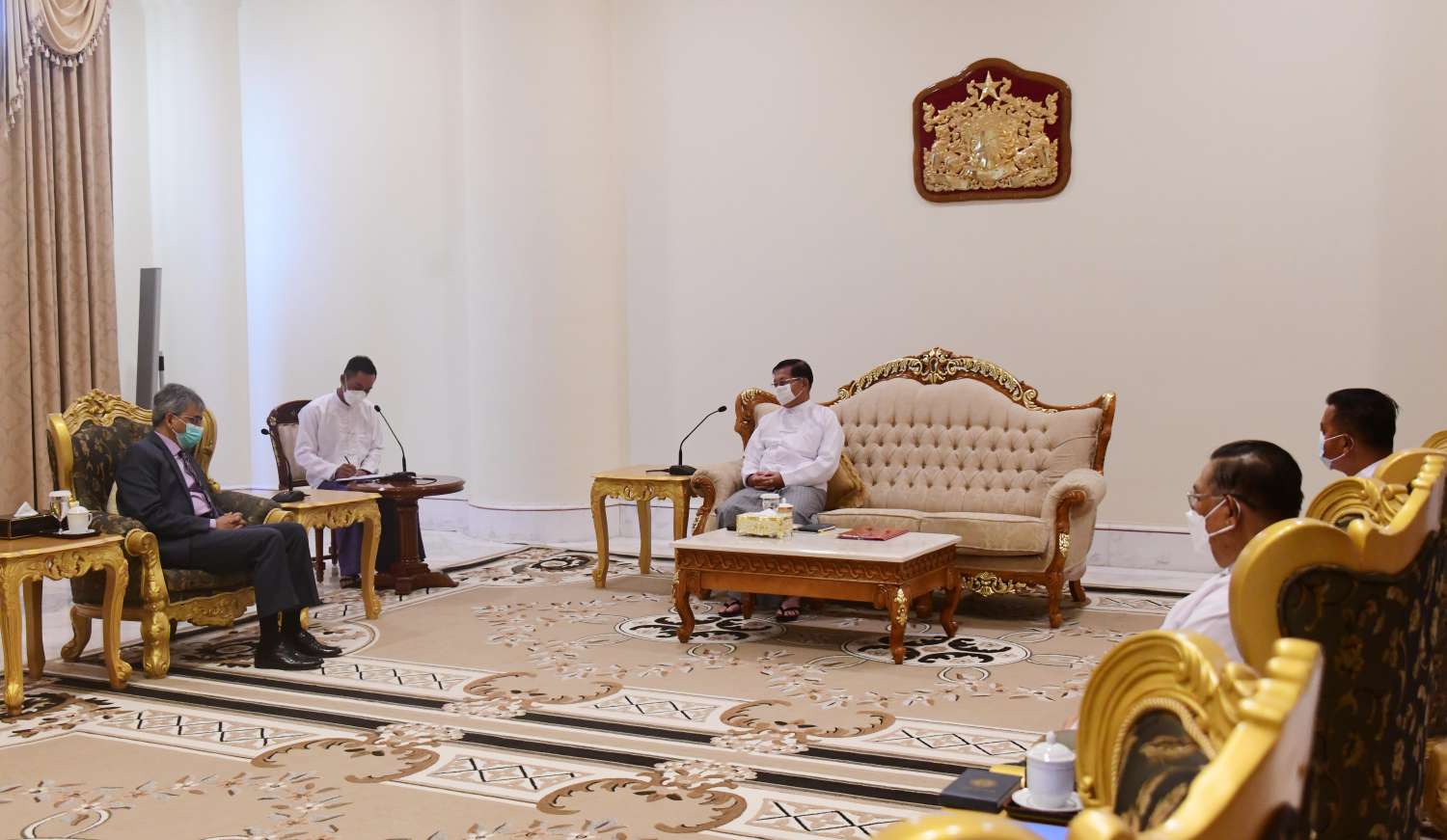 နိုင်ငံတော်စီမံအုပ်ချုပ်ရေးကောင်စီဥက္ကဋ္ဌ၊ နိုင်ငံတော်ဝန်ကြီးချုပ် ဗိုလ်ချုပ်မှူးကြီး မင်းအောင်လှိုင်သည် တာဝန်ပြီးဆုံး၍ ပြန်လည်ထွက်ခွာမည့် မြန်မာနိုင်ငံဆိုင်ရာ အိန္ဒိယနိုင်ငံသံအမတ်ကြီး H.E. Mr. Saurabh Kumar အား ယနေ့မွန်းလွဲပိုင်းတွင် နေပြည်တော်ရှိ နိုင်ငံတော်စီမံအုပ်ချုပ်ရေးကောင်စီဥက္ကဋ္ဌရုံး၊ ဧည့်ခန်းမ၌ လက်ခံတွေ့ဆုံသည်။