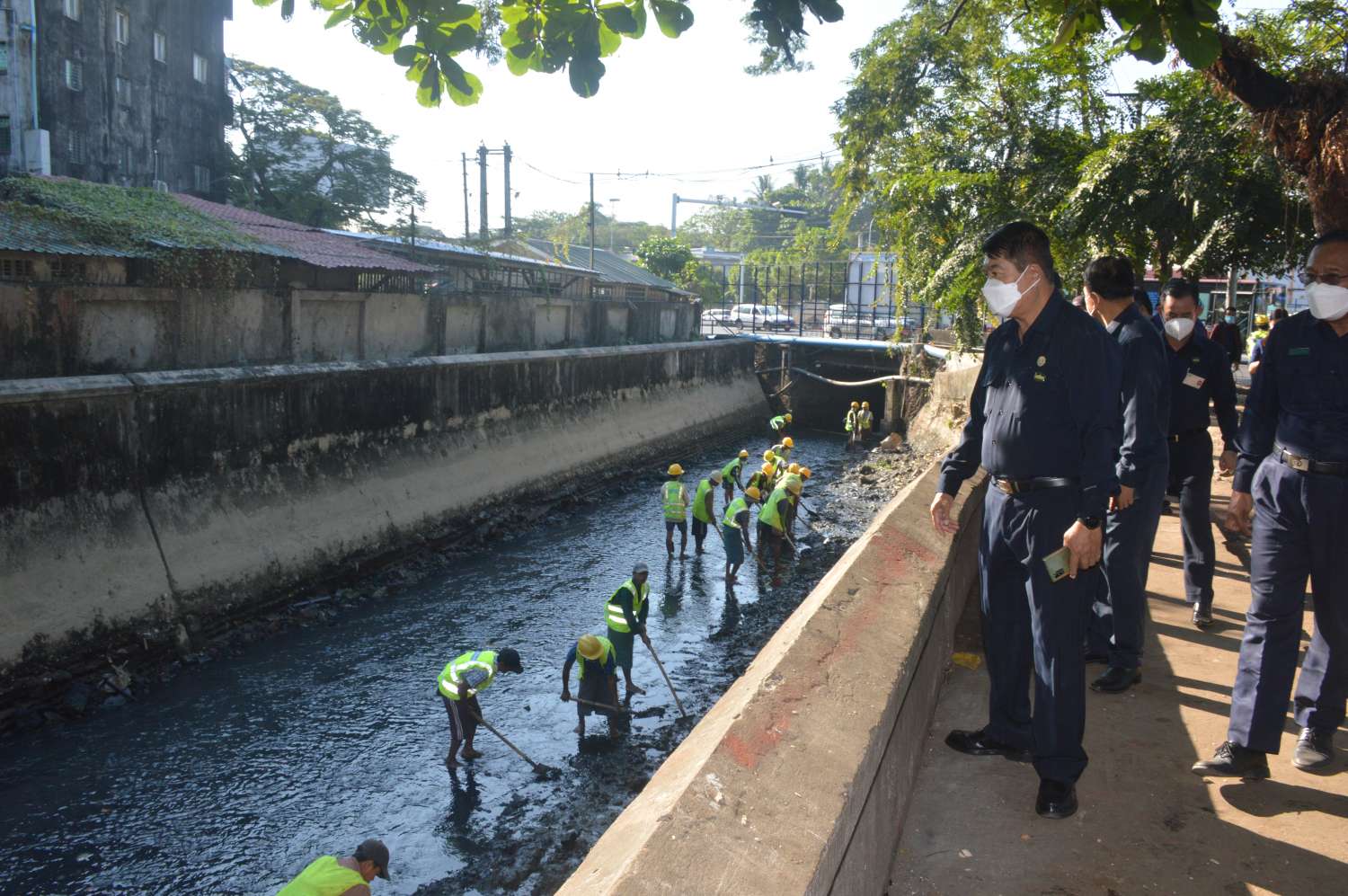 ယင်းနောက် မြို့တော်ဝန်နှင့်အဖွဲ့သည် အလုံမြို့နယ်၊ သခင်မြပန်းခြံသို့ သွားရောက်၍ စိမ်းလန်း စိုပြည်ရေးနှင့် မြေယာရှုခင်းများပြုပြင် ဆောင်ရွက်နေမှု၊ ပြည်သူများ အပန်းဖြေအနား ယူနေမှု၊ ကိုယ်လက်လှုပ်ရှားအားကစား ပြုလုပ်နေမှု၊ လမ်းမတော် မြို့နယ်၊ (၈) ရပ်ကွက်၊ အောင်ရတနာ လမ်း၊ ကျုံးကြီးမြောင်းနှင့် မော်တင်ယာယီ စျေးရပ်ကွက်၊ ကမ်းနားလမ်းရှိ ရွာသစ်ချောင်း ရေထိန်းတံခါး မြစ်ထွက်ပေါက်အတွင်း အမှိုက်နှင့်မြောင်းချေးများ ဆယ်ယူရှင်းလင်းနေမှု၊ ရေထိန်းတံခါးတွင် ရေစုပ်စက်တပ်ဆင်၍ ပြုပြင်ထိန်းသိမ်းကြံ့ခိုင်ရေး ဆောင်ရွက်ထားမှု တို့ကို ကြည့်ရှုစစ်ဆေးသည်။