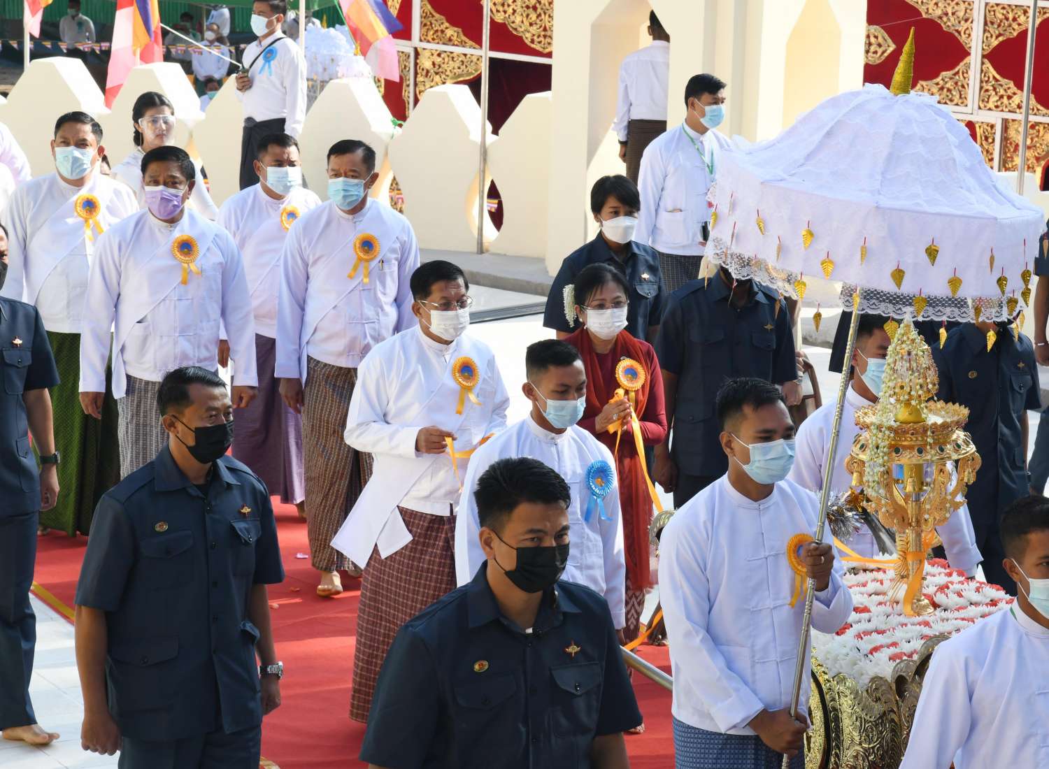 အဆိုပါ အခမ်းအနားသို့ နိုင်ငံတော်စီမံအုပ်ချုပ်ရေးကောင်စီ ဥက္ကဋ္ဌ၊ နိုင်ငံတော် ဝန်ကြီးချုပ် ဗိုလ်ချုပ်မှူးကြီး မင်းအောင်လှိုင်၊ ဇနီးဒေါ်ကြူကြူလှနှင့် မိသားစုဝင်များ၊ နိုင်ငံတော် စီမံအုပ်ချုပ်ရေးကောင်စီဝင်များဖြစ်ကြသည့် ဗိုလ်ချုပ်ကြီး တင်အောင်စန်းနှင့် ဇနီး၊ ဗိုလ်ချုပ်ကြီး မောင်မောင်ကျော်နှင့်ဇနီး၊ ဒုတိယဗိုလ်ချုပ်ကြီး မိုးမြင့်ထွန်း၊ ကောင်စီ တွဲဖက် အတွင်းရေးမှူး ဒုတိယဗိုလ်ချုပ်ကြီး ရဲဝင်းဦးနှင့်ဇနီး၊ ပြည်ထောင် စုဝန်ကြီးများ၊ ရန်ကုန် တိုင်းဒေသကြီးဝန်ကြီးချုပ်၊ ကာကွယ်ရေးဦးစီးချုပ်(ရေ) နှင့်ဇနီး၊ ကာကွယ်ရေး ဦးစီးချုပ်ရုံးမှ တပ်မတော်အရာရှိကြီးများနှင့် ဇနီးများ၊ ရန်ကုန်တိုင်းစစ်ဌာန ချုပ်တိုင်းမှူး၊ ရန်ကုန် မြို့တော်ဝန်၊ ဖိတ်ကြားထားသည့် ဧည့်သည်တော်များ၊ စေတနာရှင်အလှူရှင်များ၊ အရာရှိ၊ စစ်သည်၊ မိသားစုများ၊ ဝတ်အသင်းအဖွဲ့များနှင့် ဒေသခံပြည်သူများ တက်ရောက်ကြသည်။