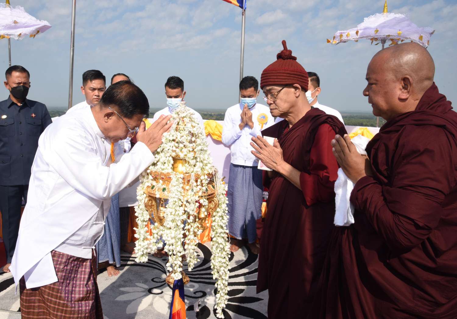 အခမ်းအနားအပြီးတွင် နိုင်ငံတော်စီမံအုပ်ချုပ်ရေးကောင်စီ ဥက္ကဋ္ဌ၊ နိုင်ငံတော် ဝန်ကြီးချုပ်နှင့်ဇနီး၊ အခမ်းအနားတက်ရောက်လာကြသူများသည် ဆရာတော်၊ သံဃာ တော်များအား နေ့ဆွမ်းဆက်ကပ်လှူဒါန်းကြကာ တက်ရောက်လာကြသည့် ဧည့်သည် တော်များအား နေ့လယ်စာဖြင့် တည်ခင်းဧည့်ခံခဲ့ကြသည်။