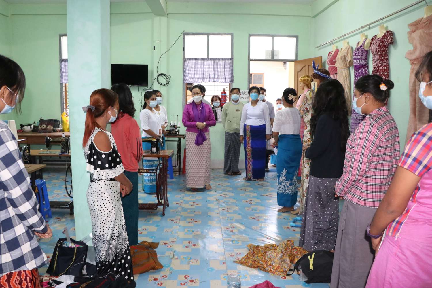 ဆက်လက်၍ ပြည်ထောင်စုဝန်ကြီးနှင့် တာဝန်ရှိသူများသည် အိမ်တွင်းမှုသက်မွေး အတတ်ပညာသင် ကျောင်းသို့ ရောက်ရှိပြီး သင်တန်းကျောင်းများတွင် ပို့ချလျက်ရှိသည့် သက်မွေးပညာရပ်များနှင့် လက်တွေ့ နယ်ပယ်တွင် ယခုထက်ပိုမိုထိရောက် အကျိုးရှိသည့် ပညာရပ်များကို ကျွမ်းကျင်သူများ၏ အကူအညီရယူ၍ နည်းစနစ်တကျတစ်ဆင့်ချင်း ပြောင်းလဲတိုးချဲ့ဖွင့်လှစ်သွားနိုင်ရေး ဆောင်ရွက်သွားရန် မှာကြားသည်။