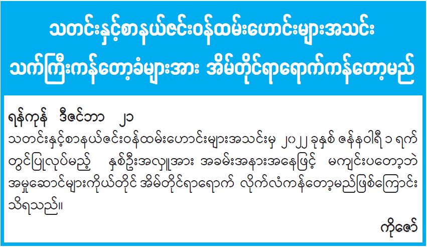 သတင်းနှင့်စာနယ်ဇင်း ဝန်ထမ်းဟောင်းများအသင်း သက်ကြီးကန်တော့ခံများအား အိမ်တိုင်ရာရောက်ကန်တော့မည်