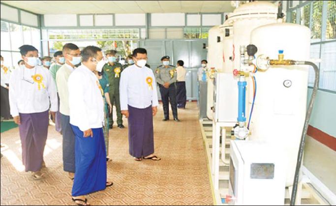 ဦးစွာ ဝန်ကြီးချုပ်၊ တိုင်းမှူးနှင့် တာဝန်ရှိသူများက အောက်ဆီဂျင်စက်ရုံဖွင့်ပွဲ ဆိုင်းဘုတ်ကို ဖဲကြိုးဖြတ်ဖွင့်လှစ်ပေးသည်။ ထို့နောက် ကဗ္ဗည်းမော်ကွန်းအား အမွှေးနံ့သာရည်များ ပက်ဖျန်းပေးပြီး စက်ရုံလည်ပတ်မှုအခြေအနေများကို လှည့်လည် ကြည့်ရှုကြသည်။