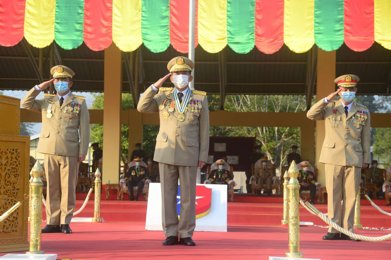 ယင်းနောက် နိုင်ငံတော်စီမံအုပ်ချုပ်ရေးကောင်စီဥက္ကဋ္ဌ၊ တပ်မတော်ကာကွယ်ရေးဦးစီးချုပ် ဗိုလ်ချုပ်မှူးကြီး မဟာသရေစည်သူ မင်းအောင်လှိုင်သည် ဗိုလ်လောင်းတပ်ခွဲများ၏ အလေးပြုခြင်းကို ခံယူပြီးနောက် စစ်ရေးပြအခမ်းအနားမှ ပြန်လည်ထွက်ခွာသည်။
