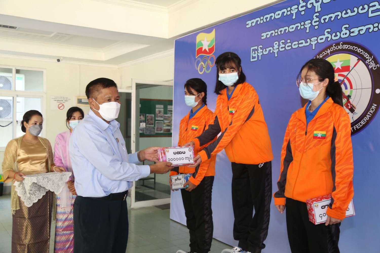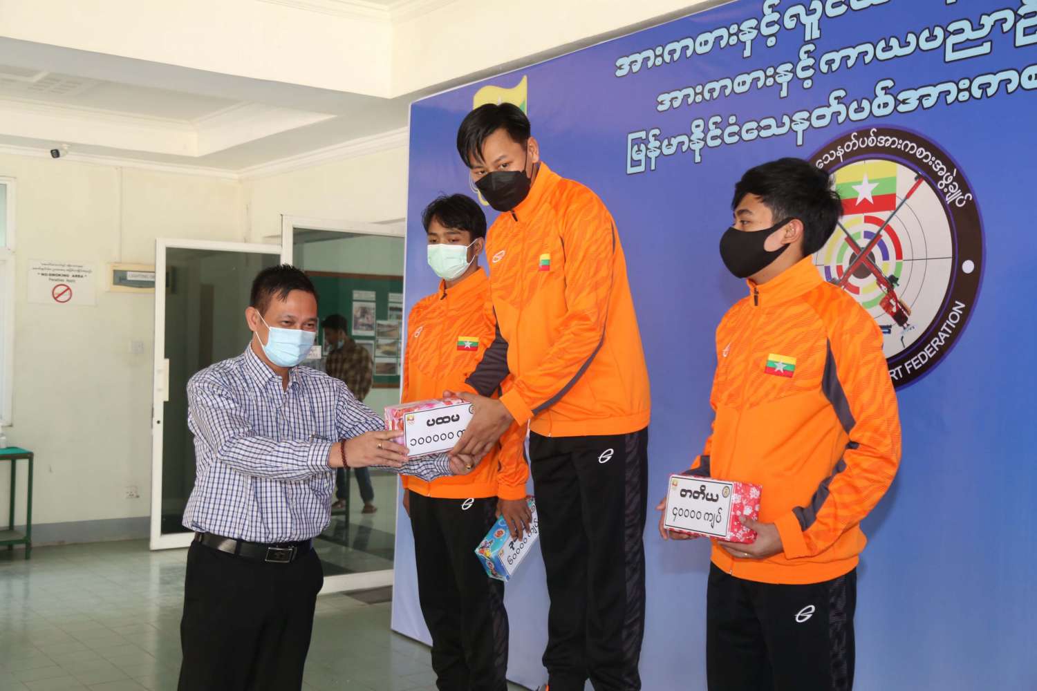 ဆက်လက်၍ ဆုပေးပွဲအခမ်းနား ကျင်းပရာ ရန်ကုန်တိုင်းဒေသကြီးအစိုးရအဖွဲ့ နည်းပညာ အကြံပေး ဦးဌေးလင်း က အမျိုးသား(၁၀)မီတာလေပစ္စတို ပြိုင်ပွဲတွင် ပထမဆုရ ရဲထွန်းနောင်၊ ဒုတိယဆုရ ကျော်စွာဝင်း ၊ တတိယဆုရ ဟန်မင်းထက် တို့ကိုလည်းကောင်း၊ ရန်ကုန်တိုင်းဒေသကြီး အစိုးရအဖွဲ့ ဥပဒေအကြံပေး ဒေါက်တာထွန်းထွန်းဝင်း က အမျိုးသား (၁၀)မီတာလေရိုင်ဖယ်ပြိုင်ပွဲတွင် ပထမဆုရ ကောင်းမြတ်စံ ရမှတ် ၊ ဒုတိယဆုရ မင်းဆက်ပိုင် ၊ တတိယဆုရ အောင်မိုးနိုင် တို့ကိုလည်းကောင်း၊ အားကစားနှင့်ကာယပညာဦးစီးဌာန ညွှန်ကြားရေးမှူးချုပ် ဦးထွန်းမြင့်ဦး က အမျိုးသား (၂၅)မီတာစံချိန်မီ ပစ္စတိုပြိုင်ပွဲတွင် တတိယဆုရ ဟန်မင်းထက် နှင့် အမျိုးသား မီတာ (၅၀) စိတ်ကြိုက် ပစ္စတိုပြိုင်ပွဲတွင် ပထမဆုရ လှိုင်ဝင်းစိုး ၊ ဒုတိယဆုရ ရဲထွန်းနောင် နှင့် တတိယဆုရ ကျော်စွာဝင်း တို့ကို လည်းကောင်း၊ ရန်ကုန်တိုင်းဒေသကြီးအစိုးရအဖွဲ့ ဥပဒေချုပ် ဦးဌေးအောင် က အမျိုးသမီး (၁၀)မီတာလေပစ္စတို ပြိုင်ပွဲတွင် ပထမဆုရ သူဇာဌေး ၊ ဒုတိယဆုရ ချစ်စိုးနွယ်နှင့် တတိယ ဆုရ သင်းသင်းဆွေ တို့ကိုလည်းကောင်း၊ ရန်ကုန်တိုင်းဒေသကြီး သယံဇာတရေးရာဝန်ကြီး ဦးဇော်ဝင်း က အမျိုးသမီး (၁၀) မီတာလေရိုင်ဖယ် ပြိုင်ပွဲတွင် ပထမဆုရ ဧမြတ်ရတနာဦး၊ ဒုတိယဆုရ ဥမ္မာခိုင်၊ တတိယဆုရ ကေဇင်ဝါဝါကို တို့ကို လည်းကောင်း၊ ရန်ကုန်တိုင်းဒေသကြီး စီးပွားရေးရာဝန်ကြီး ဦးအောင်သန်းဦး က အမျိုးသမီး(၂၅)မီတာ အားကစားပစ္စတို ပြိုင်ပွဲတွင် ပထမဆုရ သူဇာဌေး ရမှတ်၊ ဒုတိယဆုရ သင်းသင်းဆွေ နှင့် တတိယဆုရ နီနီဝင်း တို့ကိုလည်းကောင်း ဆုများ ချီးမြှင့်ခဲ့ကြကြောင်း သိရသည်။