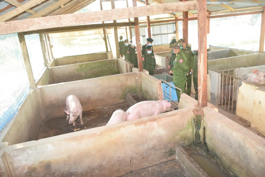 ဒေသတွင်းစားနပ်ရိက္ခာဖူလုံရေးနှင့် ပြည်သူများ၏ စားသောက်ရေးကို အထောက်အကူ ဖြစ်စေရန်အတွက် ယနေ့ညနေပိုင်းတွင် အနောက်တောင်တိုင်းစစ်ဌာနချုပ် တိုင်းမှူး ဗိုလ်ချုပ် အောင်အောင်နှင့် အဖွဲ့ဝင်များသည် ဧရာဝတီတိုင်းဒေသကြီး၊ ပုသိမ်မြို့၊ နယ်မြေခံတပ်ရင်းရှိ မွေးမြူရေးလုပ်ငန်း များအား သွားရောက်ကြည့်ရှု၍ တာဝန်ရှိသူများနှင့်တွေ့ဆုံကာ ကုန်ထုတ်လုပ်မှု လုပ်ငန်းများ ရာနှုန်းပြည့်ဆောင်ရွက်နိုင်ရေးနှင့် လိုအပ်သည်များ ပေါင်းစပ်ညှိနှိုင်း ဆောင်ရွက် ပေးခဲ့ကြောင်း သတင်းရရှိသည်။